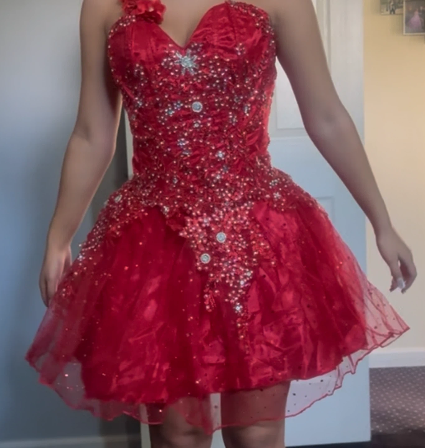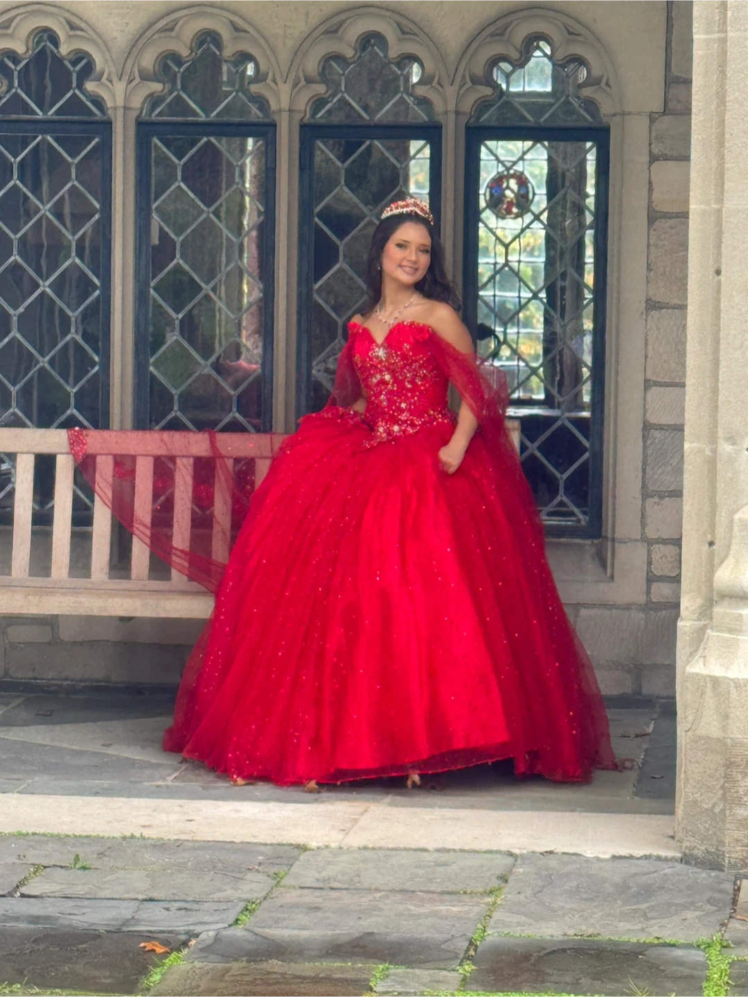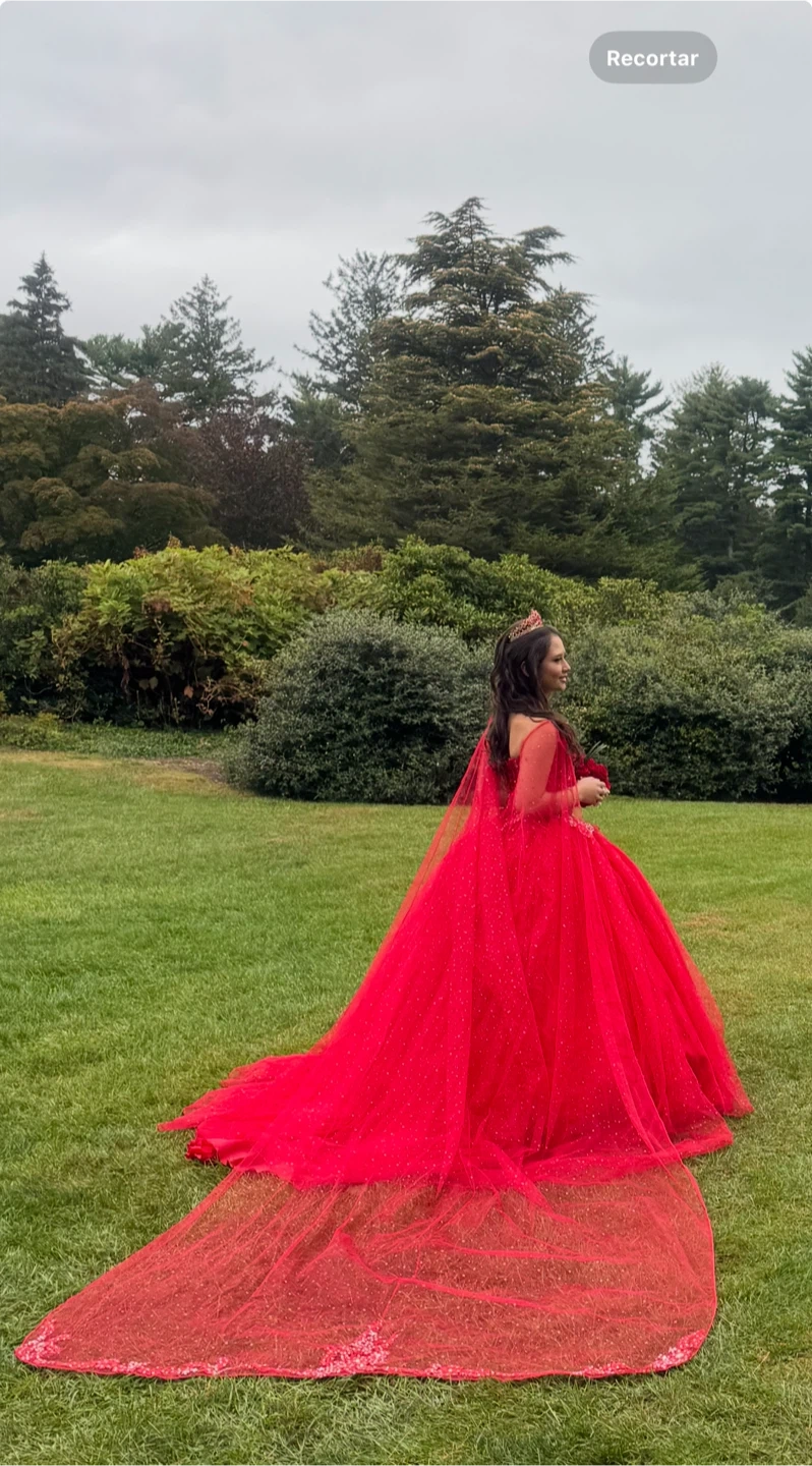 60Vestido quinceañera usado solo una vez para fotos. tiene vestido de cambio corto, velo ,se. puede usar estrapless o con tiras, trae guantes y enagua con argollas para dar volumen. Es talla (S). Quinceañera dress uses once for a photo shoot. It also has a short dress under for the after occasion, and it has a veil for the back. You get the option to wear it with straps or strapless and it comes with gloves and the petticoat that has rings for more volume. It is size small (S).
