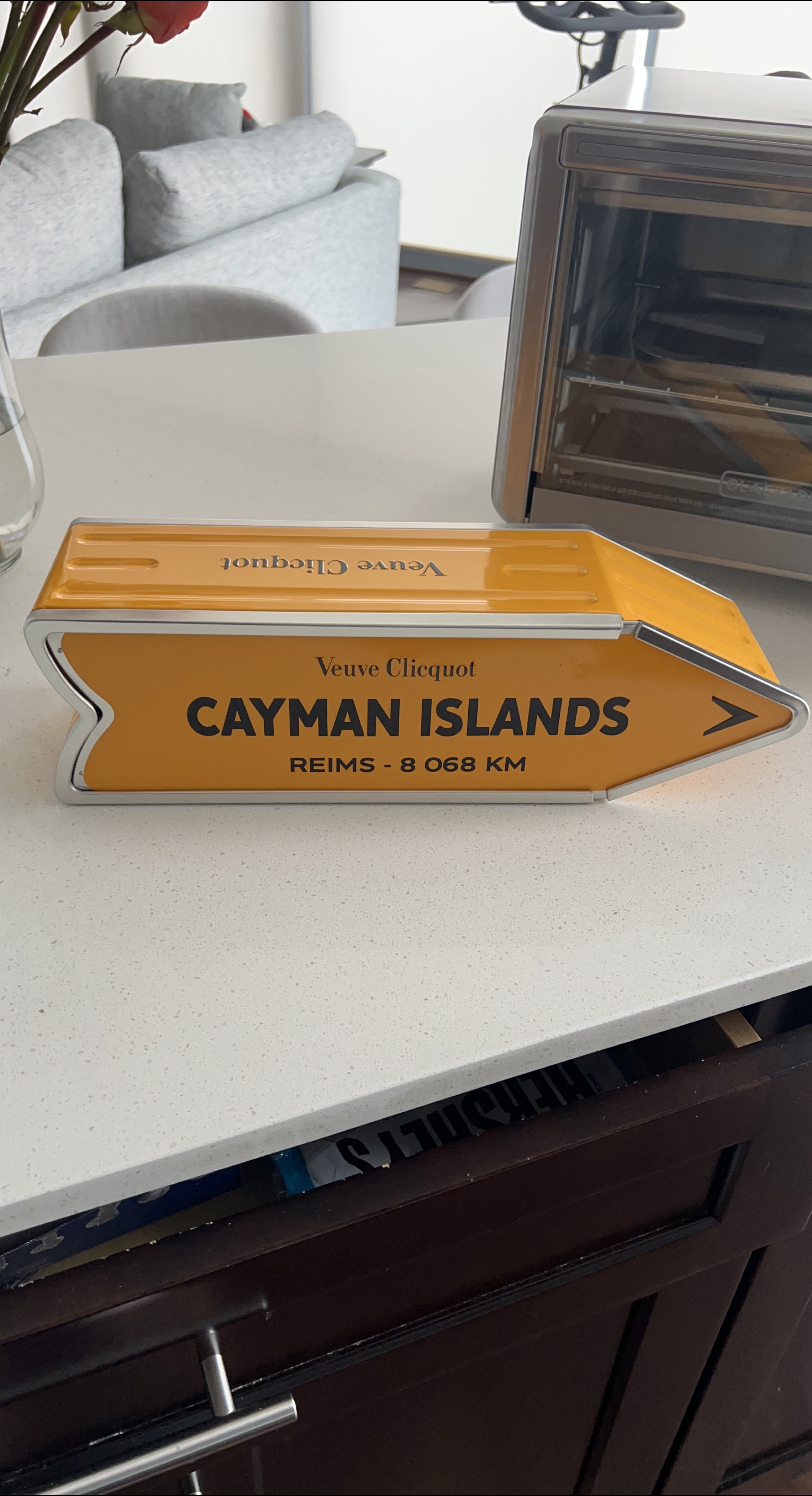 Selling a Veuve Clicquot Cayman Islands sign. It's a unique piece! Tin only, no bottle.
