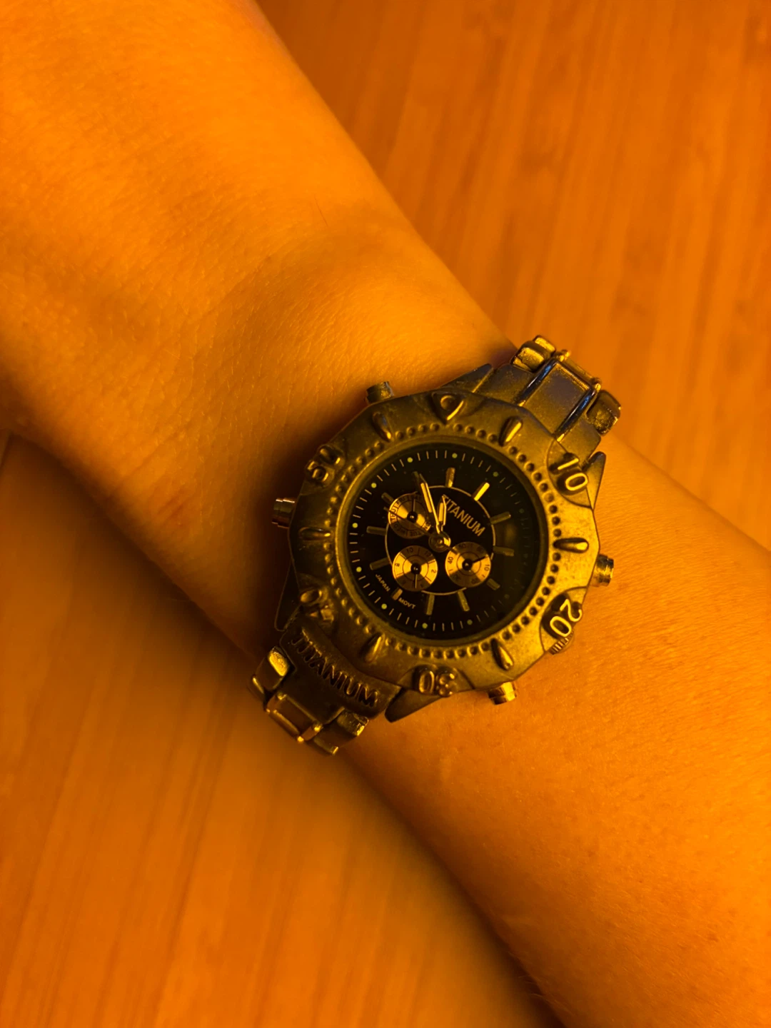 1 / 31 / 3Buy & SellUniversal Titanium Watch Chronograph, Japan MovtUniversal Titanium Watch Chronograph, Japan Movt$40This is a titanium watch with a black face. It features a metal band and a fold-over clasp. It's a durable and classic timepiece.ConditionLike newWHERE TO MEETUptownView MapSELLERverifiedBarbaraUptown872 reviews0 chats·0 favorites·13 viewsSEND CHAT TO SELLERHi Barbara! I’m interested in your listing.Hi Barbara! I’m interested in your listing.Get the Karrot app to chatSign In to chat