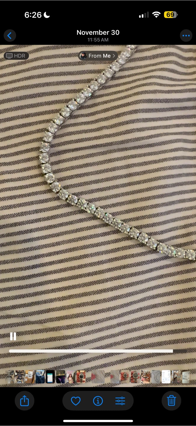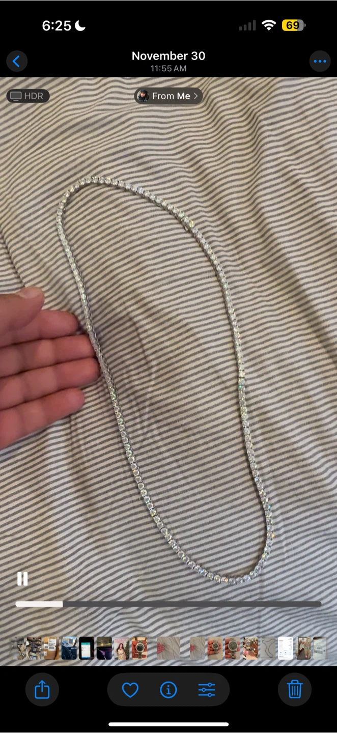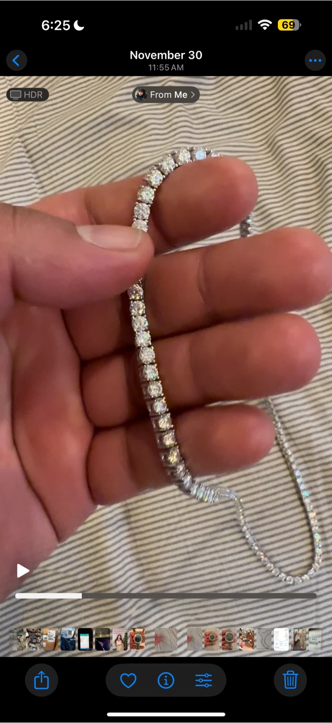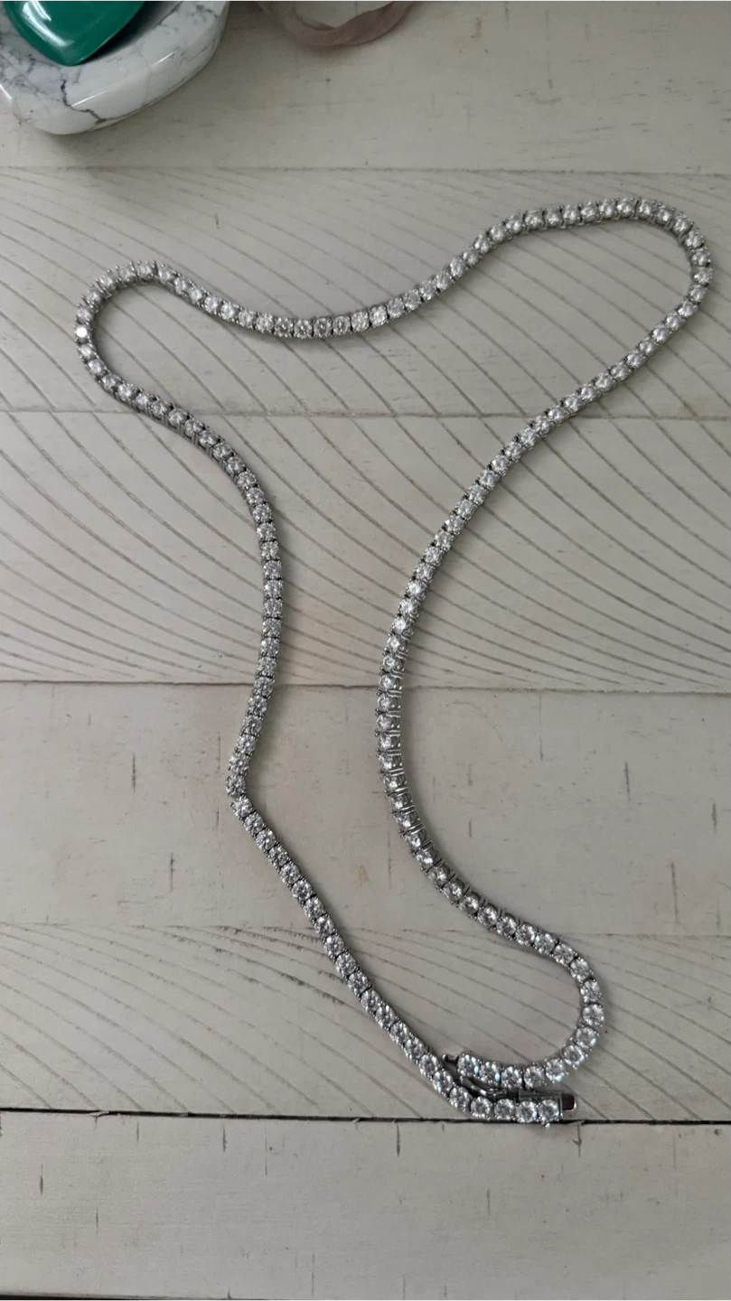 This is a beautiful moissanite tennis necklace. It's marked S925, indicating it's made of sterling silver. It appears to be in great condition and ready to add some sparkle to your outfit!