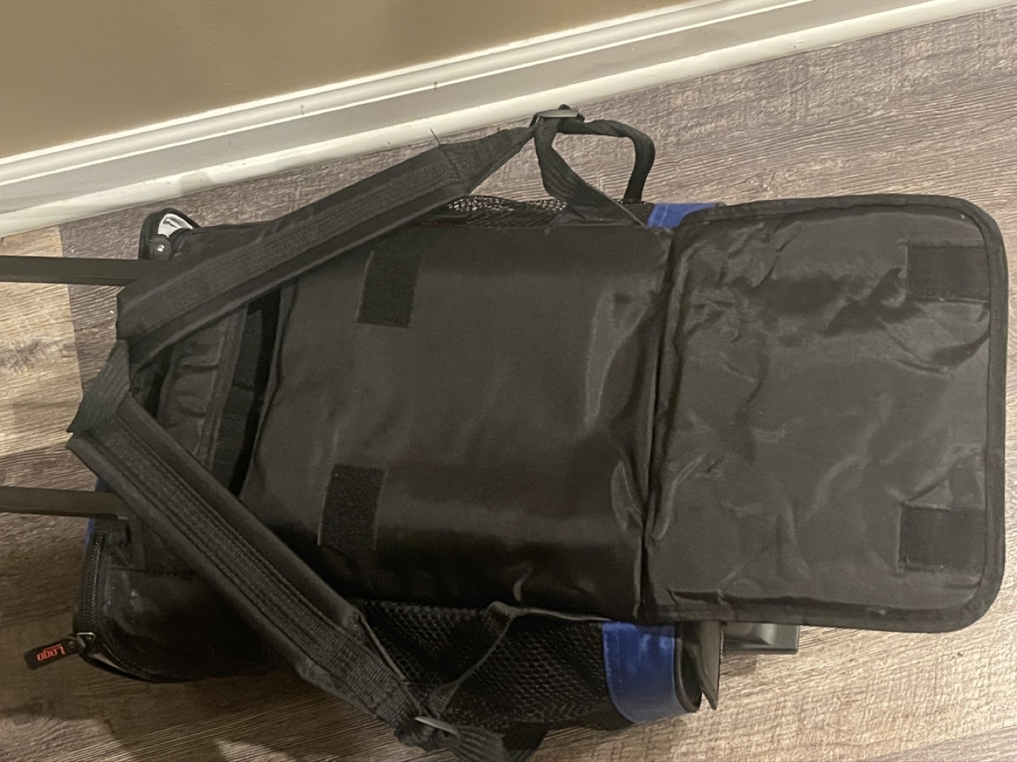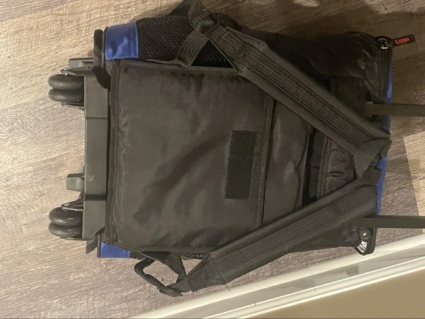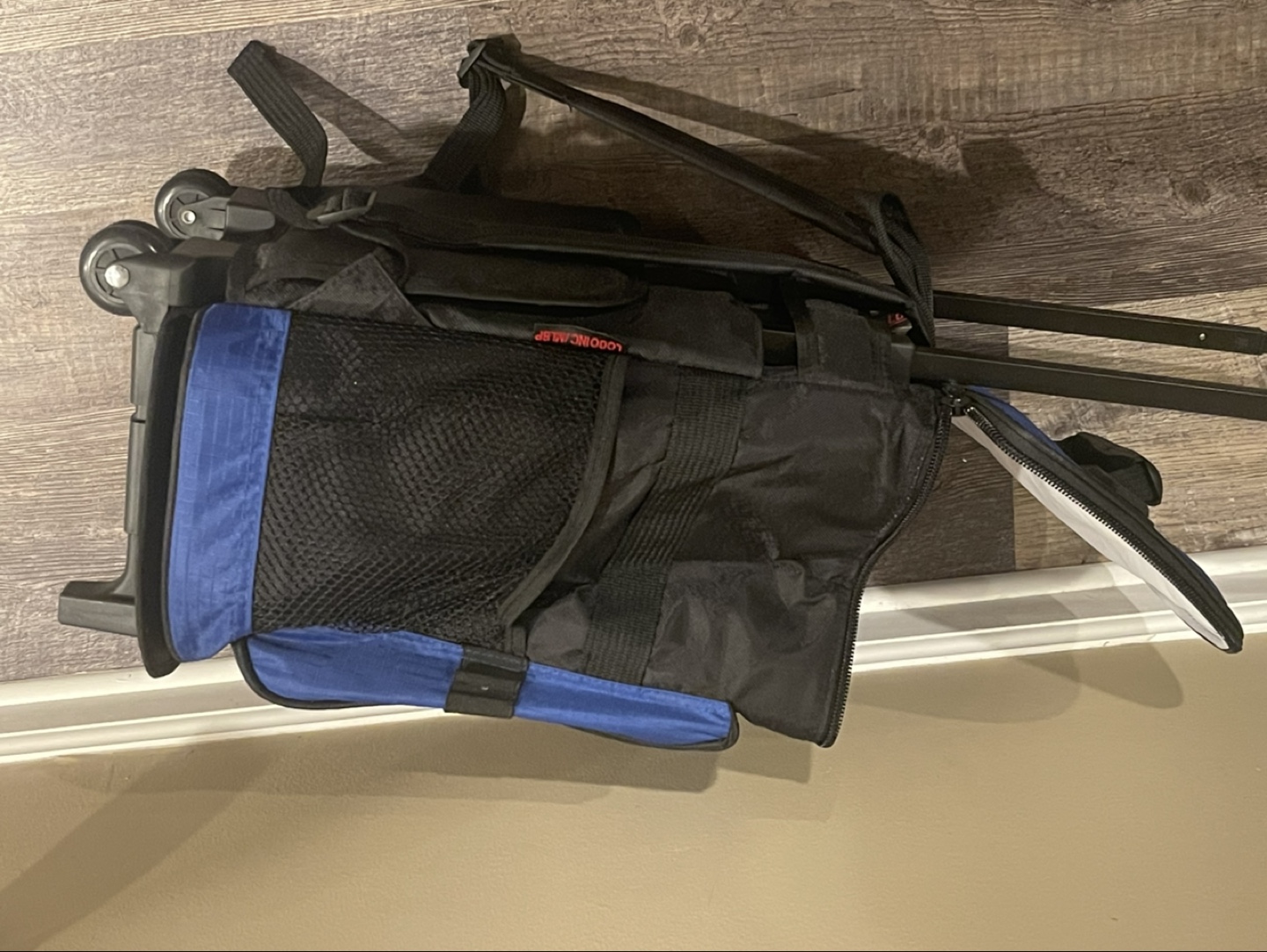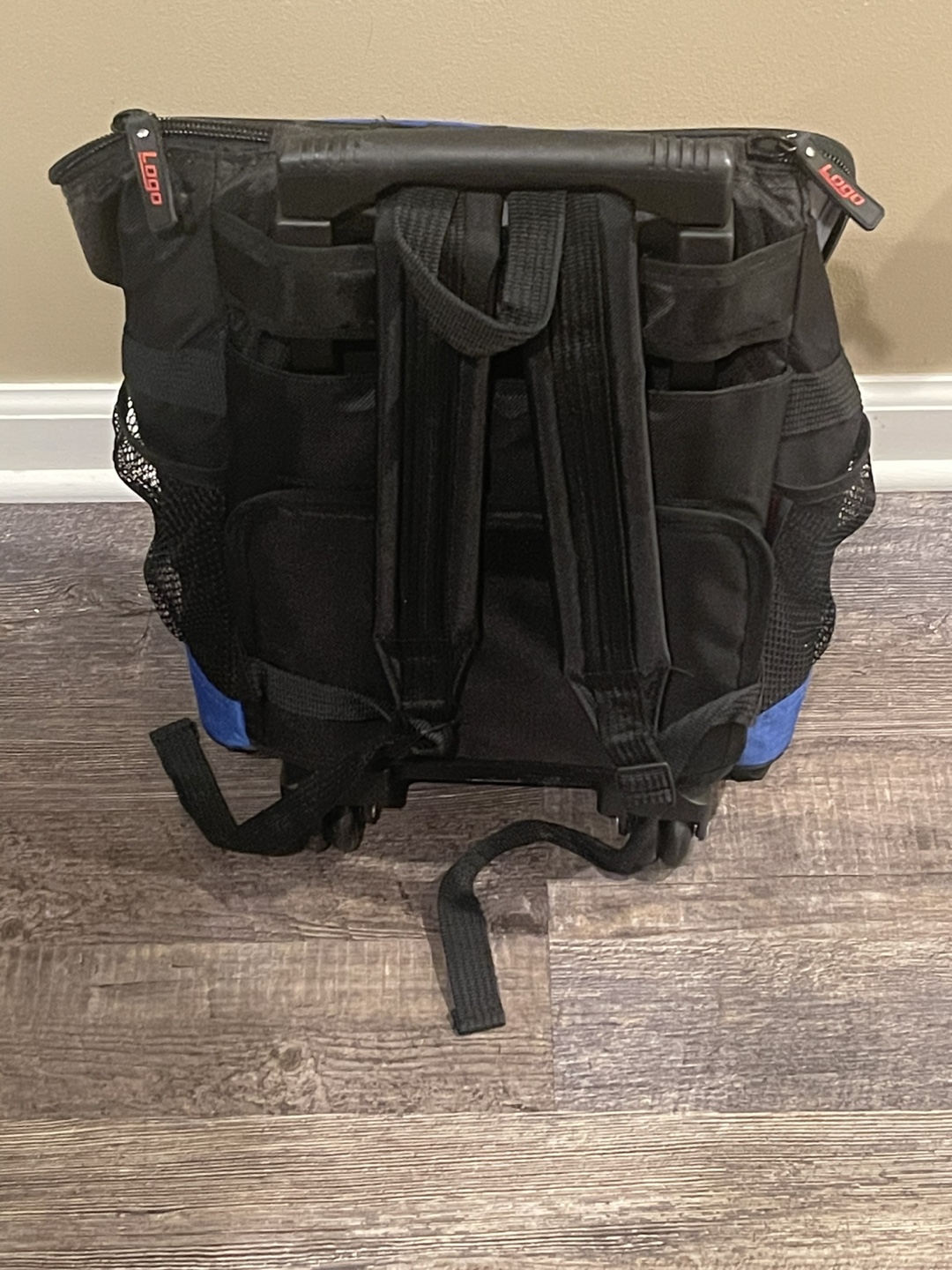 Rolling cooler backpack. Features backpack straps and wheels. Insulated main compartment. New York Mets logo. Ideal for sporting events or picnics.