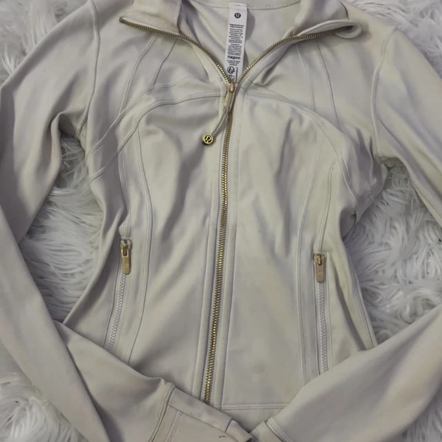 Selling a white Lululemon full zip jacket. Features zippered pockets and thumbholes. Great for workouts or casual wear!