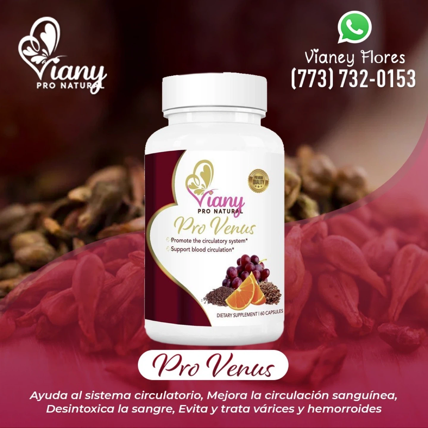 20I'm selling Viany Pro Natural supplements. They come in bottles of 60 or 90 capsules. There are several types available: - Pro Venus: Promotes the circulatory system and supports blood circulation - Di-Tox Caps: Detoxifies liver and kidneys, promotes healthy sugar and cholesterol levels, and is a diuretic - Curcuma Pro: Detoxifies liver and kidneys, promotes healthy sugar levels, and is a diuretic