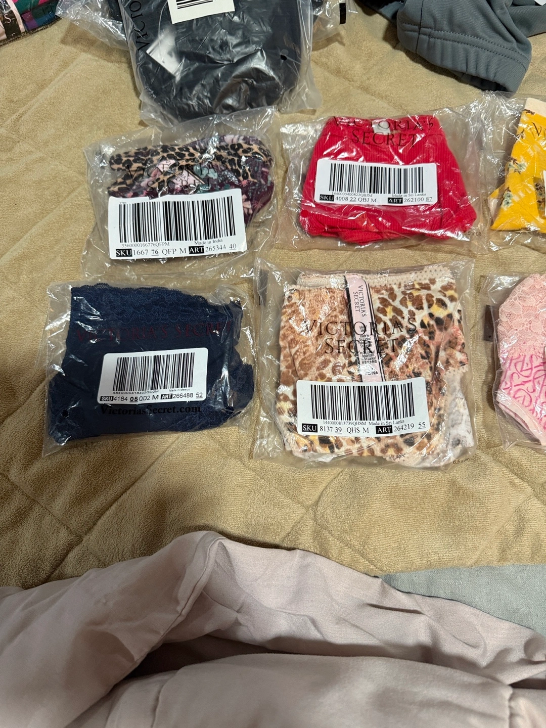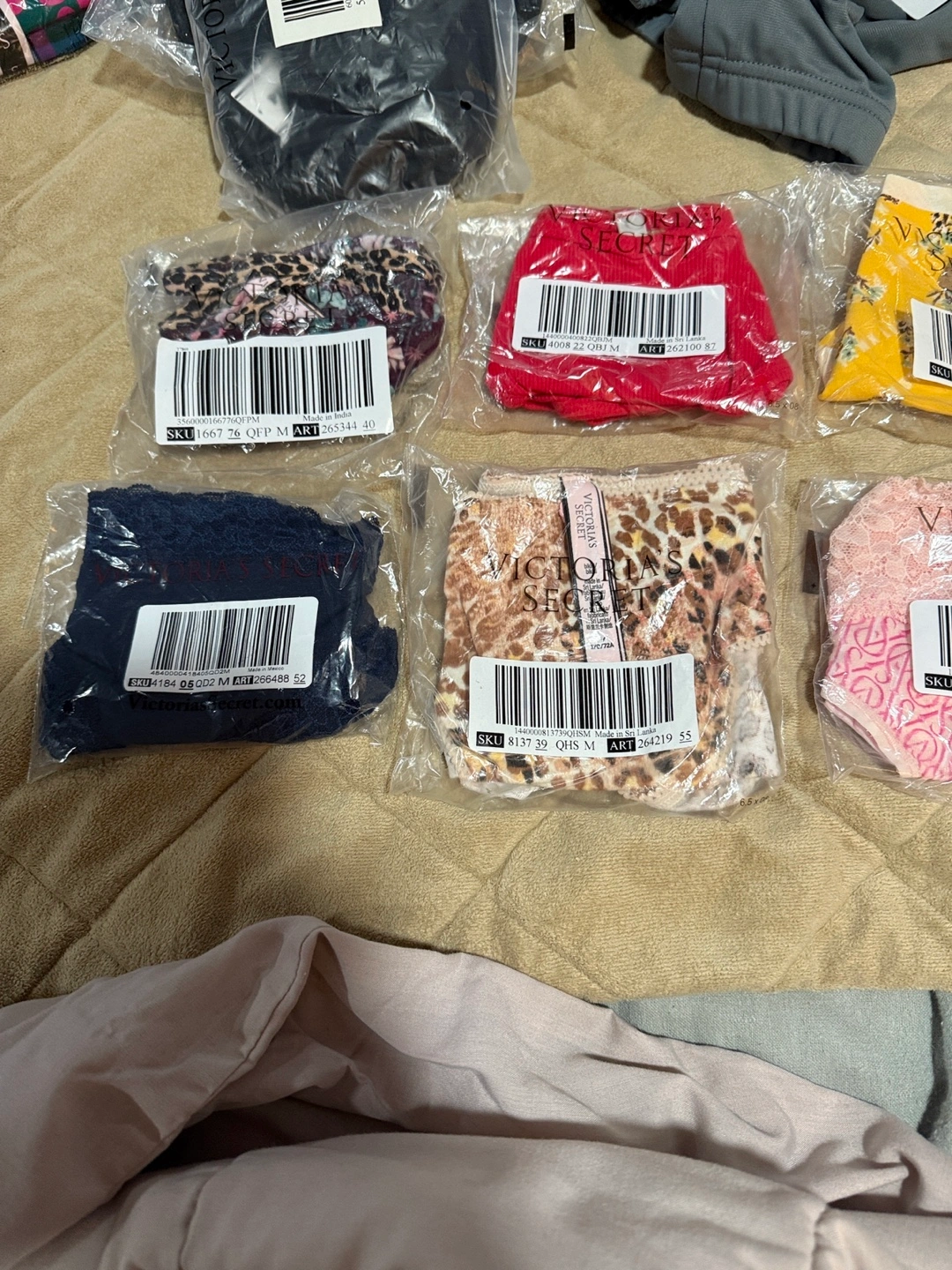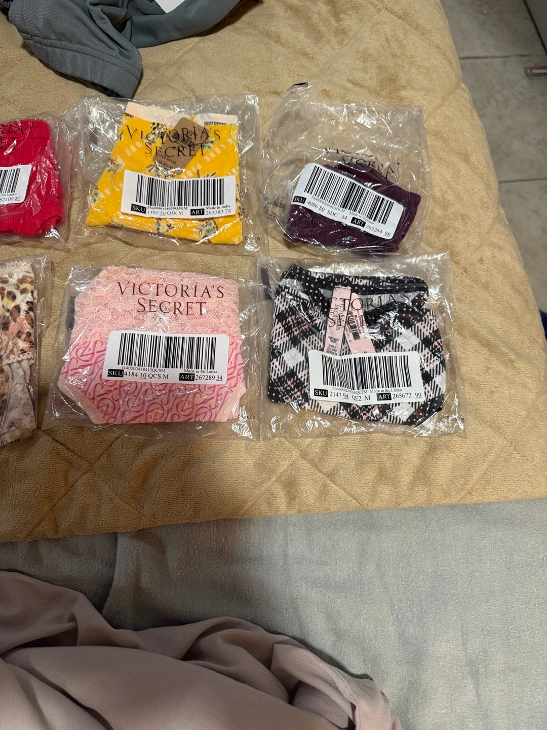 Selling new Victoria's Secret panties, size medium! Different colors and patterns available, all brand new in packaging. All Panties and one I believe one is a thong. Bundle includes 9 pairs.