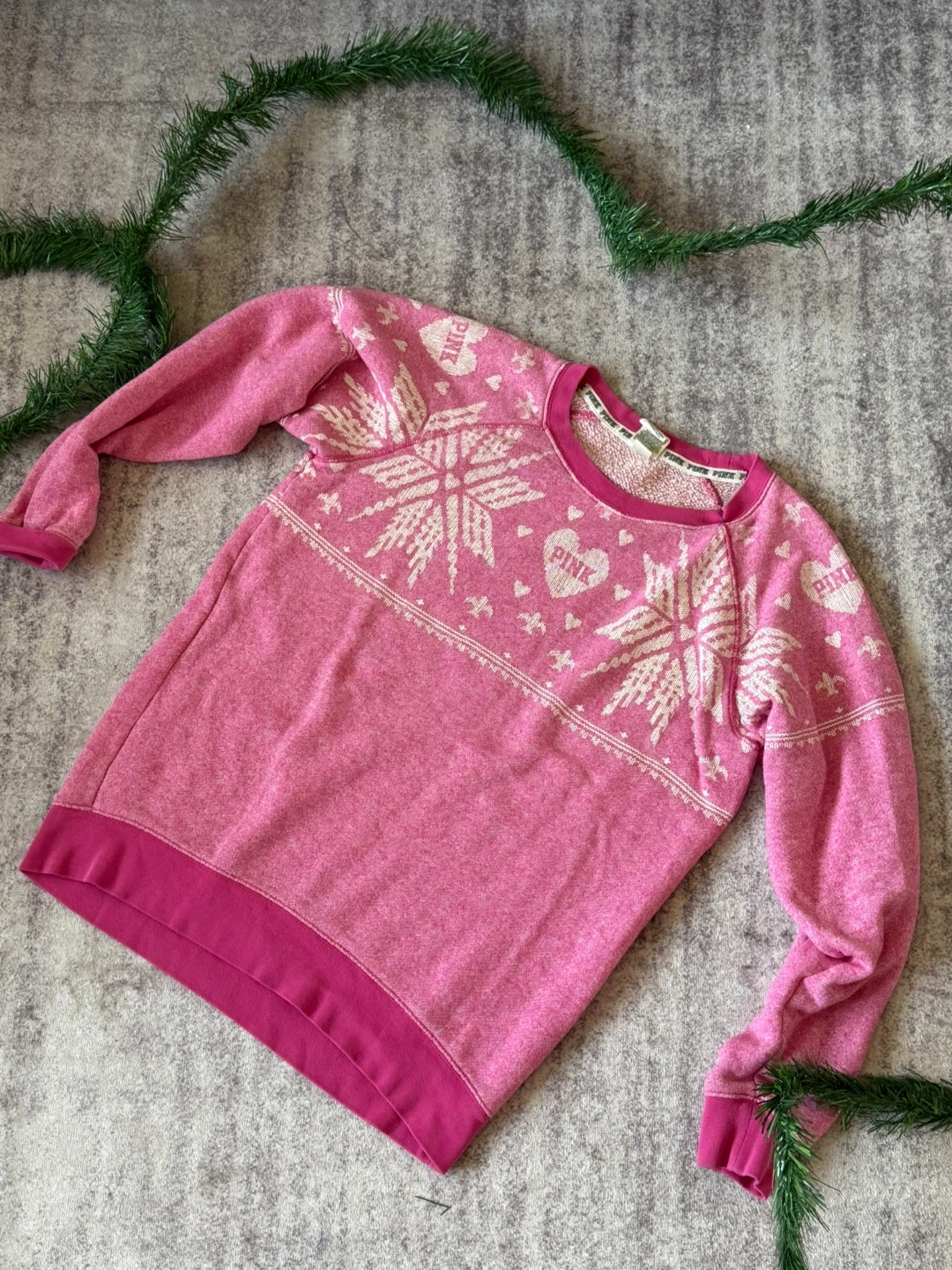 60Selling a cute Victoria's Secret PINK sweater! It's pink with a snowflake design. Perfect for the winter season!