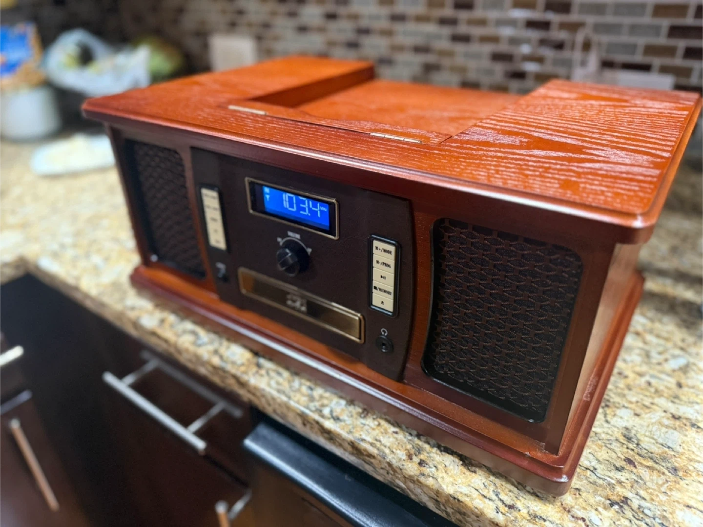 18Selling a Victrola Nostalgic 8-in-1 Bluetooth Record Player! This beautiful record player is in great condition and ready to bring some vintage charm to your home. It features a classic design with modern functionality, including Bluetooth connectivity, a CD player, and a radio. Perfect for enjoying your favorite tunes in style! Open box never used. Taken out of box for pictures