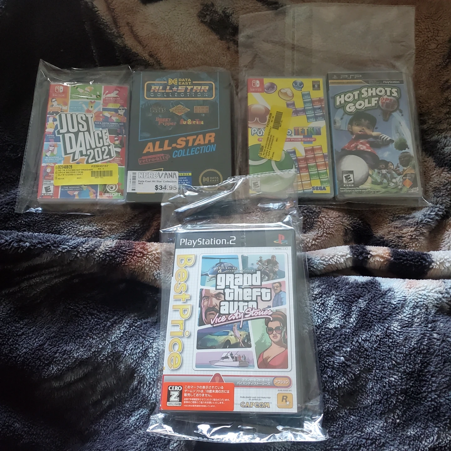 10Selling a collection of video games including Just Dance 2021 for Switch, Data East All-Star Collection, Puyo Tetris, Hot Shots Golf for PSP, and Grand Theft Auto Vice City Stories for Playstation 2