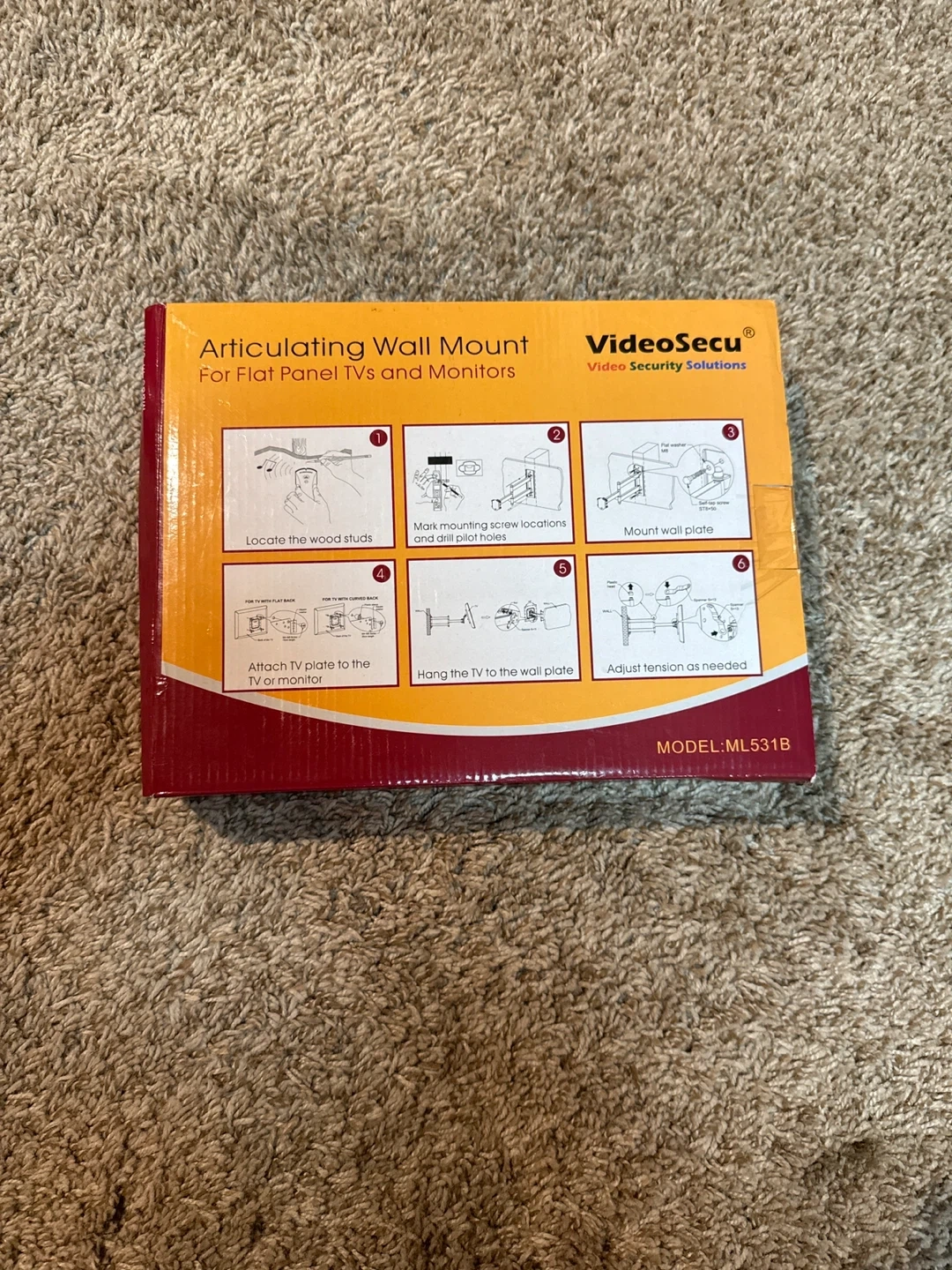 60Selling a VideoSecu articulating wall mount for flat panel TVs and monitors. It enhances viewing angle with its full motion mount and is easy to install. The model number is ML531B