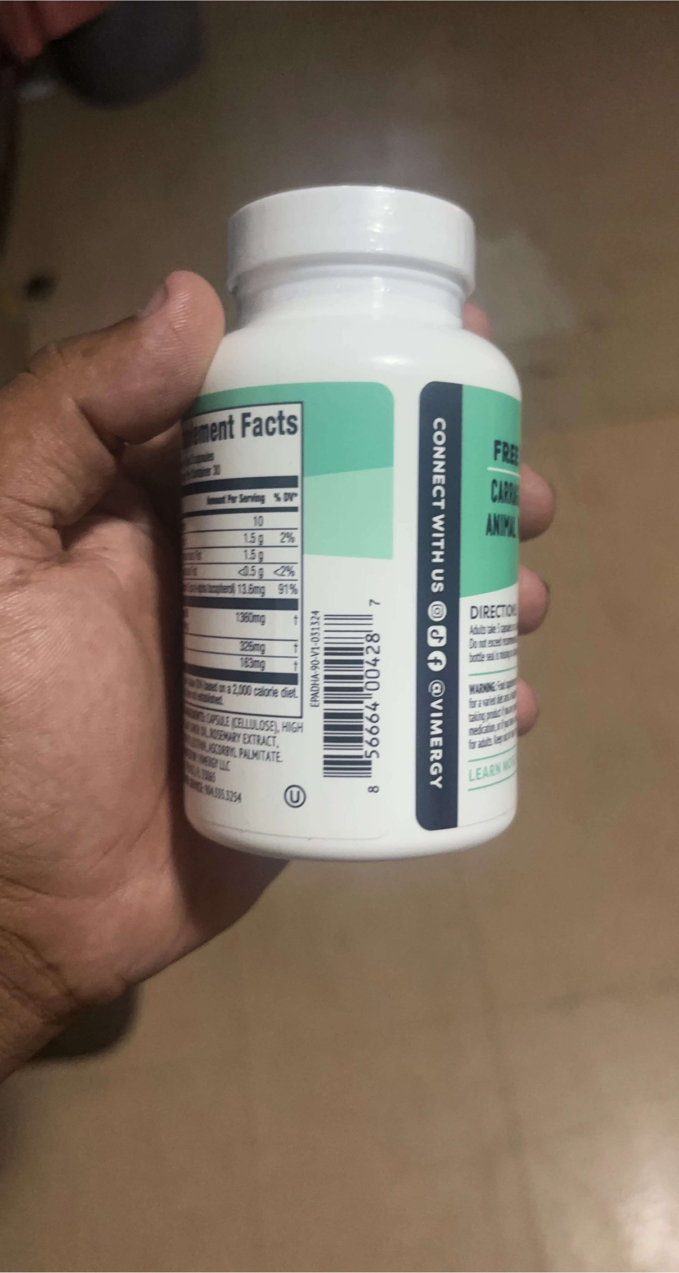 Here is a bottle of Vimergy supplements. It contains 30 capsules. Please note the supplement facts on the label for more information about the ingredients and recommended dosage