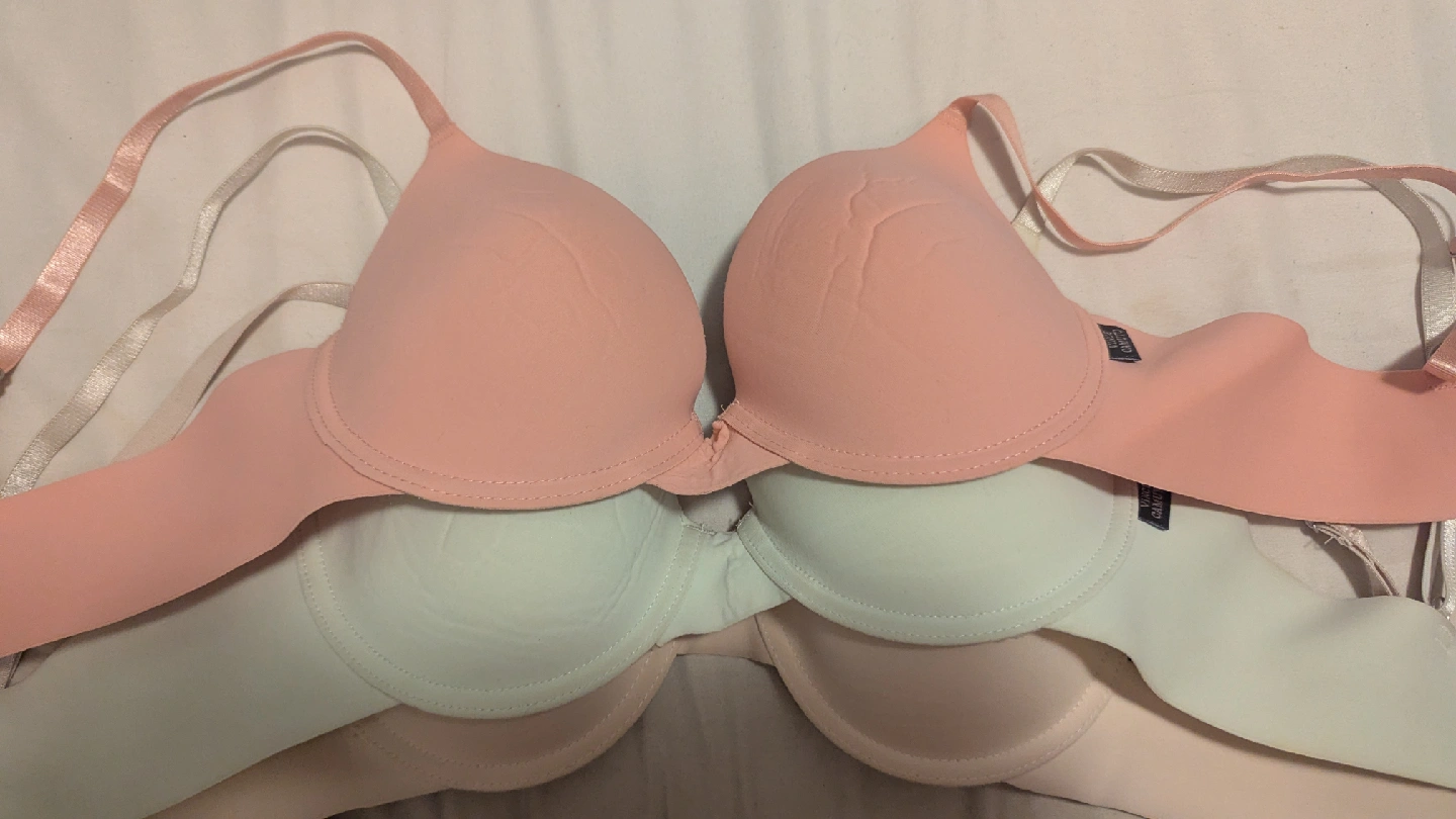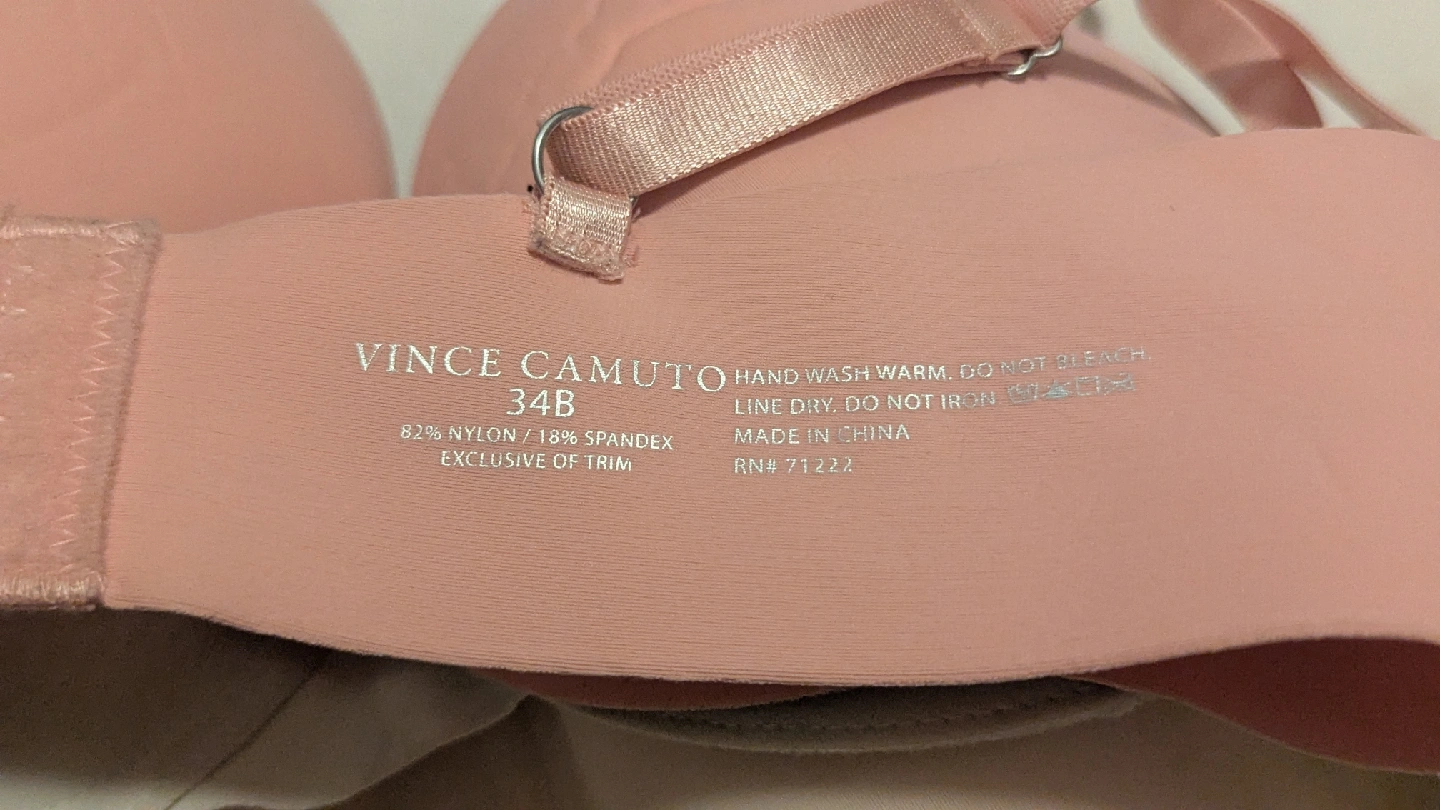 Selling a set of Vince Camuto bras in size 34B! The set includes bras in pink, white, and beige. They are made of 82% nylon and 18% spandex.