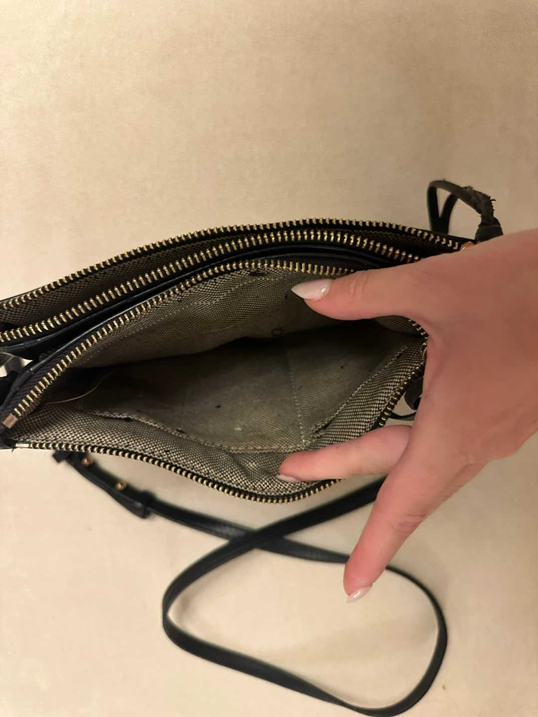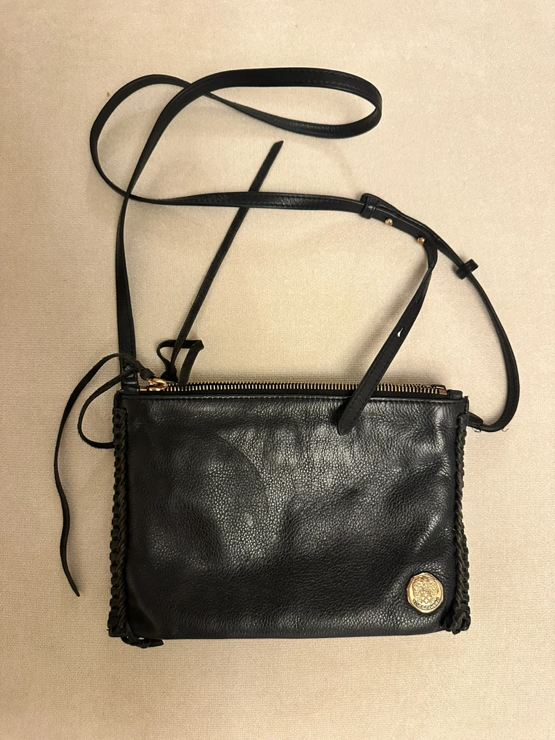 Selling a Vince Camuto black leather crossbody bag. It's in good condition and perfect for everyday use. The bag features a zipper closure and a long adjustable strap. The interior has multiple compartments to keep your belongings organized