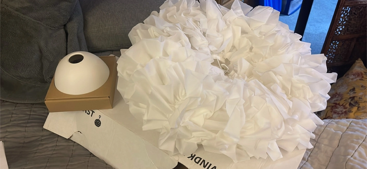 10A large white lamp. Includes a white lampshade and bulb. The instructions are also included. Place it above your bed to relax and enjoy the calming light.