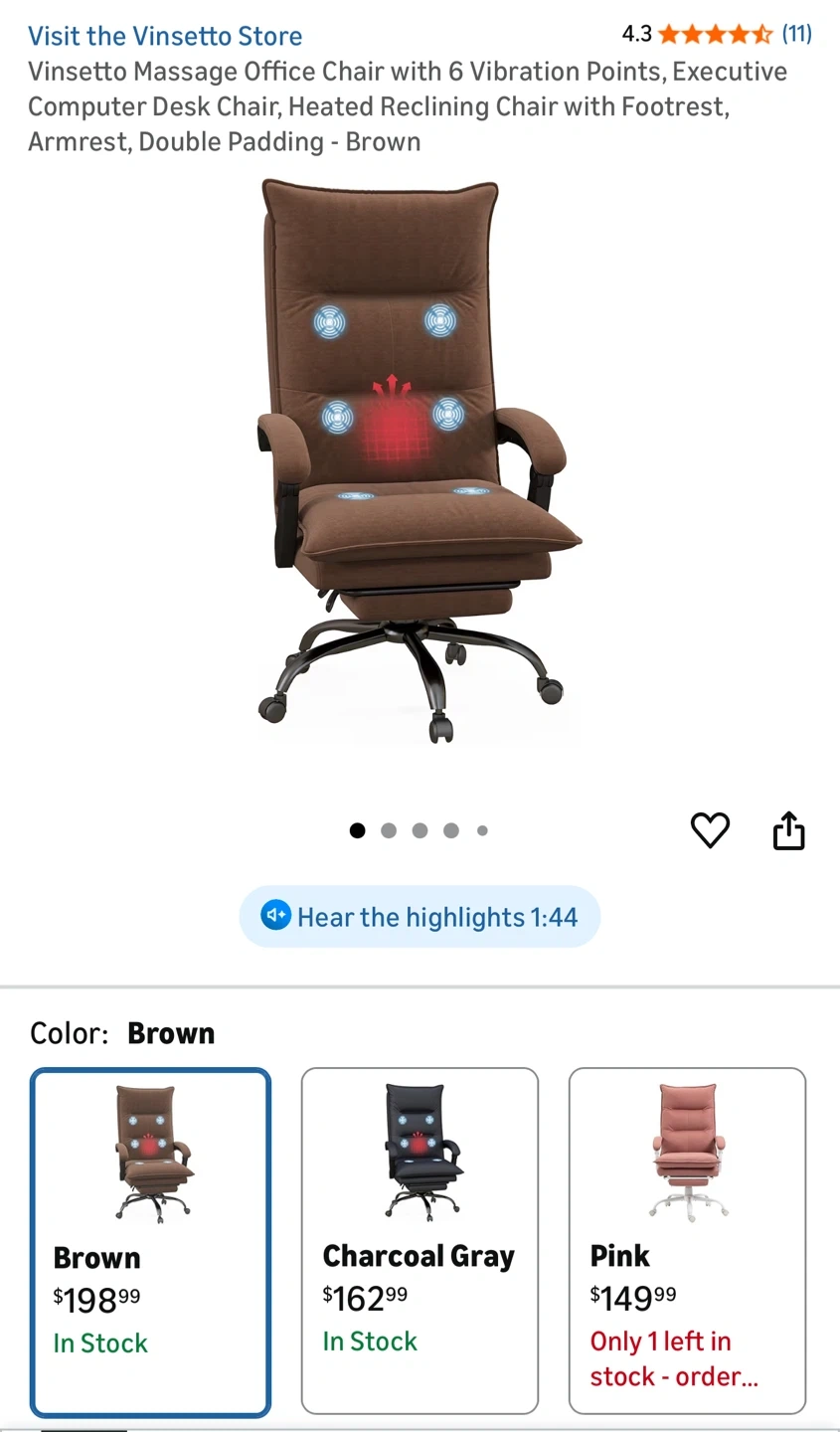 Show allVinsetto Brown Massage Office Chair w/ Vibration & Heat