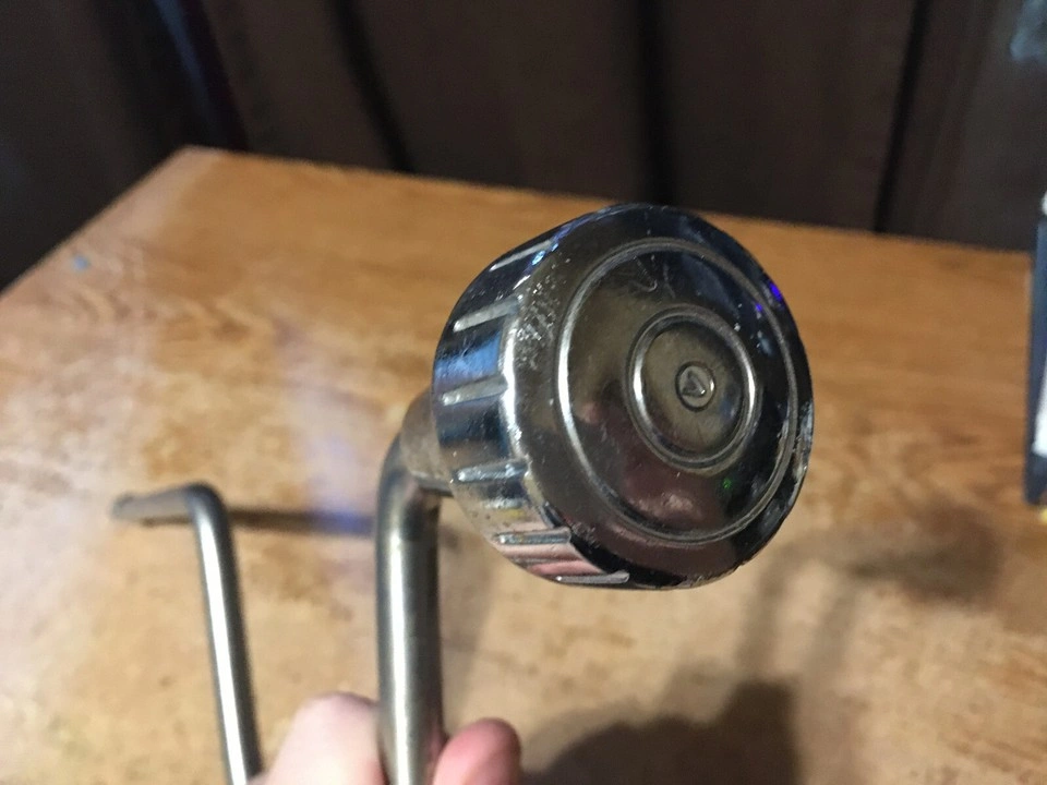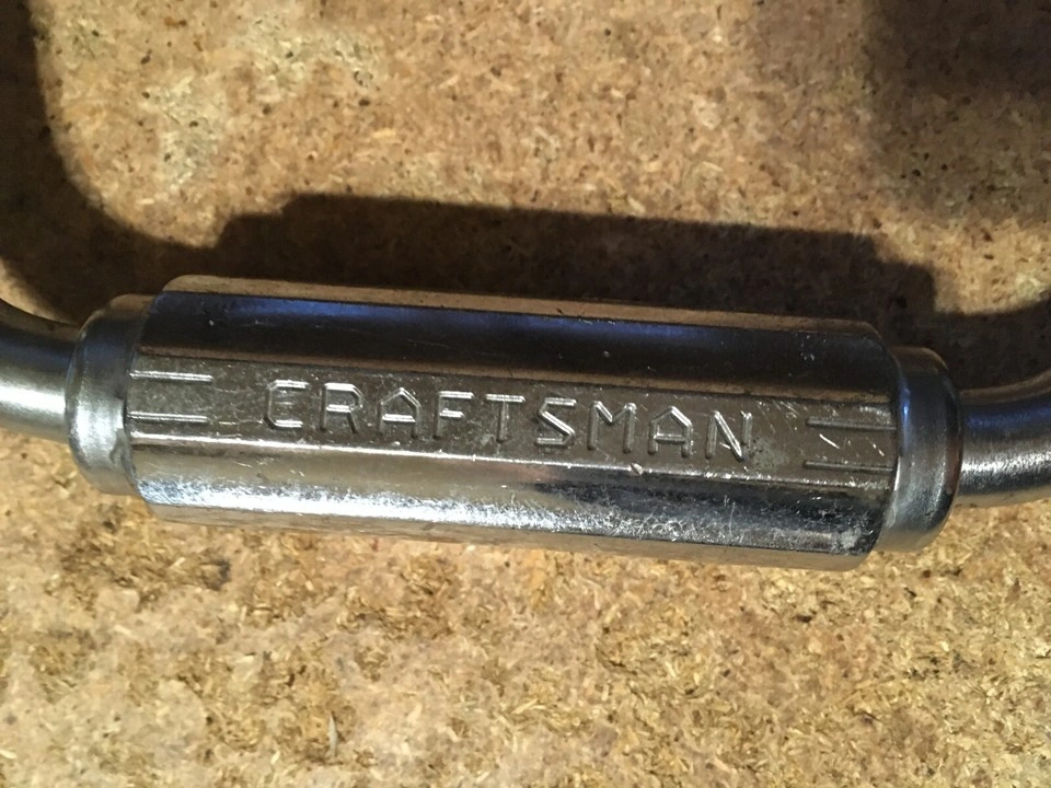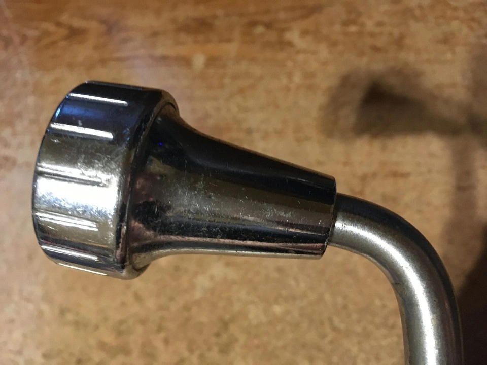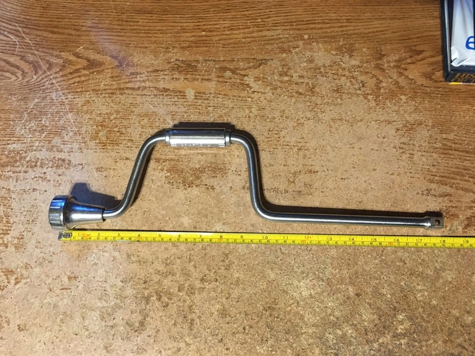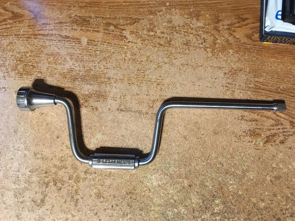 214Metal wrench. Has a unique shape. The handle has a wider section. The end has a square socket. Sometimes it is nice to simply get the job done. have somewhere on it in a little rust on the end shown last picture pick up at house