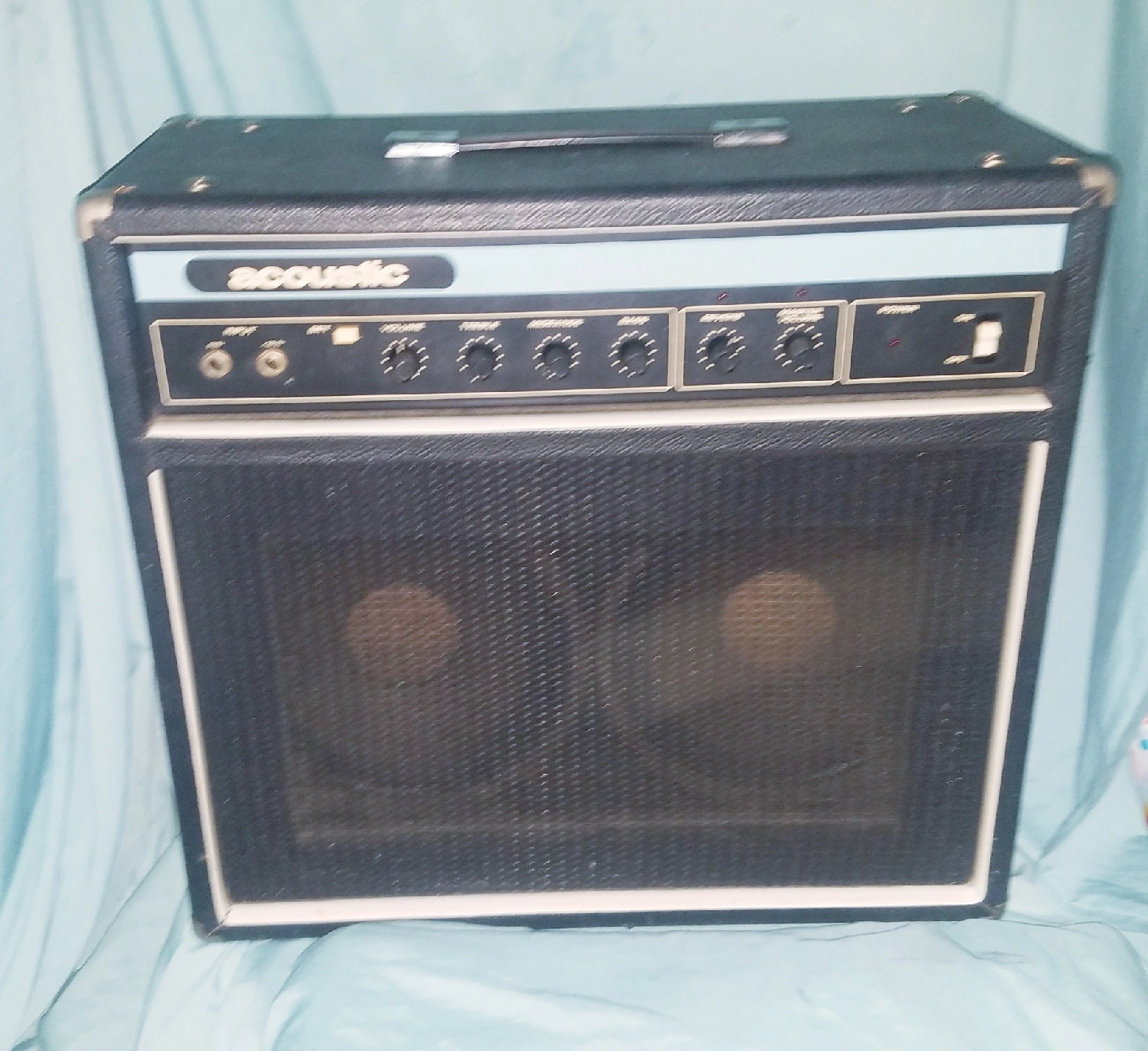 Vintage 1970's Acoustic Model #114 100 Watt Amplifier ( Made in the USA ) The Killer Sound from This Beast Is the Cleanest Amp Ever The Superior Electronics Cant Be Beat and Still Funtion As New Master Volume and Bright Switch Round Out the Control Panel These Early Acoustics Were Bulit like Brick Shithouses ( Made of Real 1970's Plywood ) It Has Footswitchable Great Reverb and Master Volume The 2 Original Front Loaded 10" Speakers are Clear as a Bell THEY CAN BE UNPLUGGED In Order To Use a Separate Cabinet And Yes The Fully Intact Grill Can Easily be Removed Cabinetry Gone Over Cleaned and Polished ( No Dust Bunnies ) I Cant Say Enough About This Gem That I Hate to Part With Don't Let It Slip Through Your Fingers!! Please See Pics... Check Out My Page For More Great Items