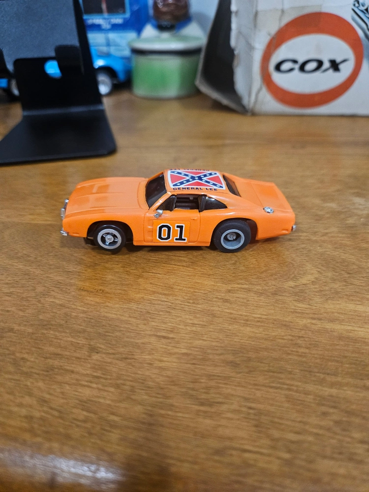 Selling a vintage 1981 General Lee car made by Ideal Toy Corp HO scale It is orange with the Confederate flag on top and the number 01 on the sides