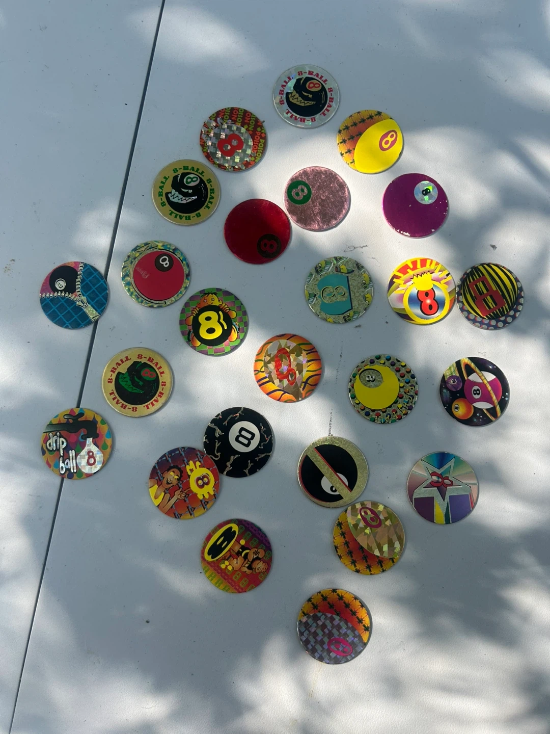 Selling a collection of vintage 8-Ball pogs! These are in great condition and feature various designs. Perfect for collectors or anyone looking for a bit of nostalgia