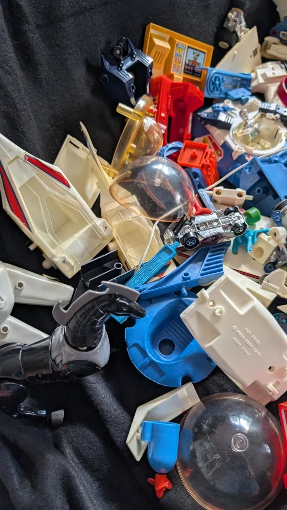 10Selling a mixed lot of vintage 1980s Micronaut toy parts and pieces! There's a fun assortment of items here, perfect for crafts, repairs, or adding to your collection. Take a look at the photos to see what's included. Collection will not be broken up