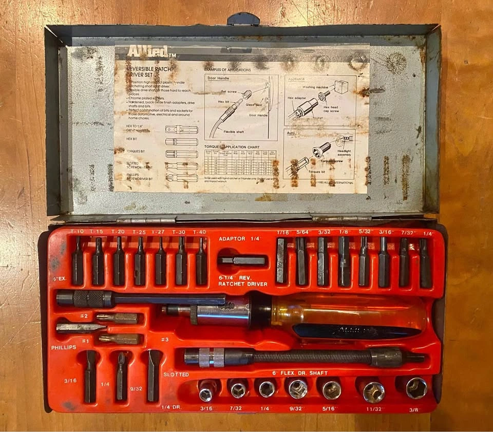 Vintage Allied Reversible Ratchet Driver Set, Original Box. Complete set, no missing pieces. Pick up near 107th & Western in Beverly.