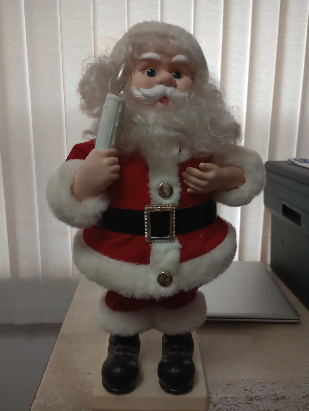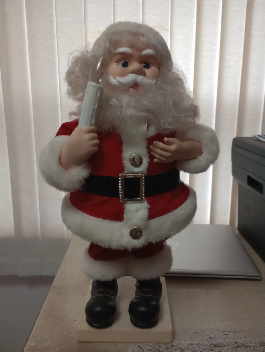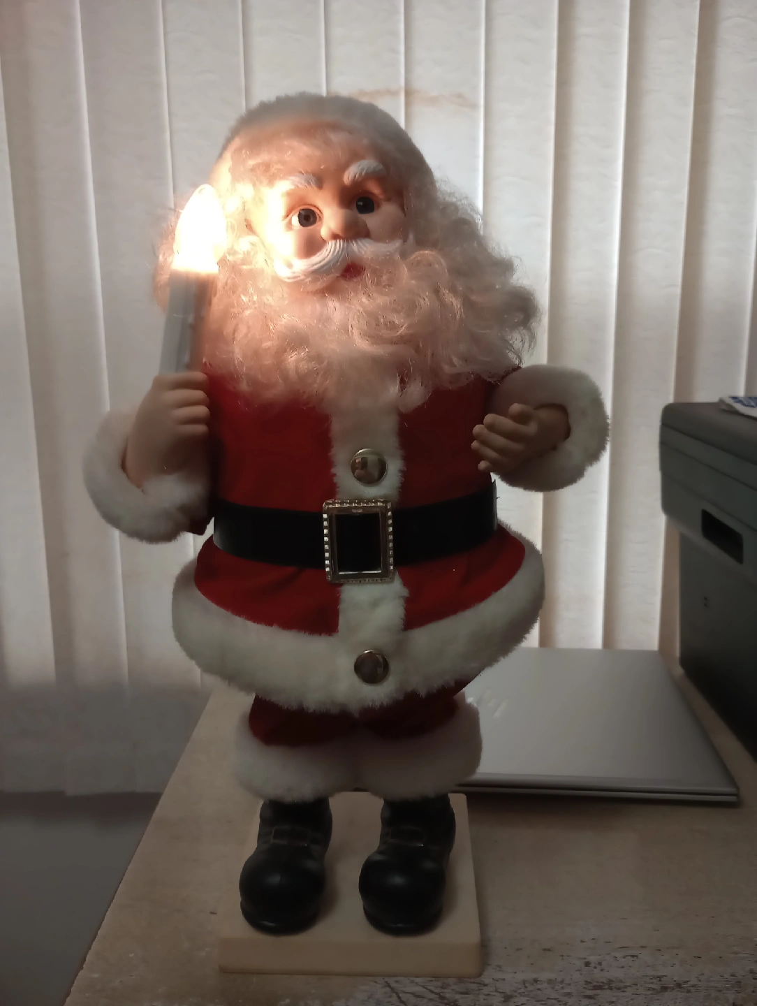 10Hi! Thank you for visiting my listings. Today, I'm selling a vintage animated/lighted Santa Claus figure! He's dressed in his classic red suit with white trim and a black belt. He's holding a candle (that lights up!). I really think this festive fellow would be a great addition to your holiday decor. Please take a peek at the pics to see if you agree. BTW, I have been a 100% Top-rated seller on eBay (my avatar/name on that platform is felicitasmaximus) for many years. So, although this is one of my first ventures on Karrot, you can certainly buy with confidence. Thanks for looking. Best wishes from West Lawn...