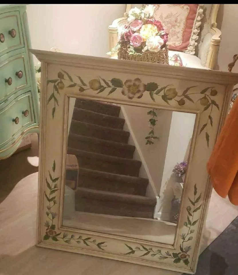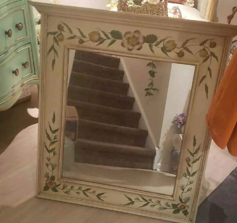 Vintage Antique Curio Handpainted Curio Hutch Cabinet Display
