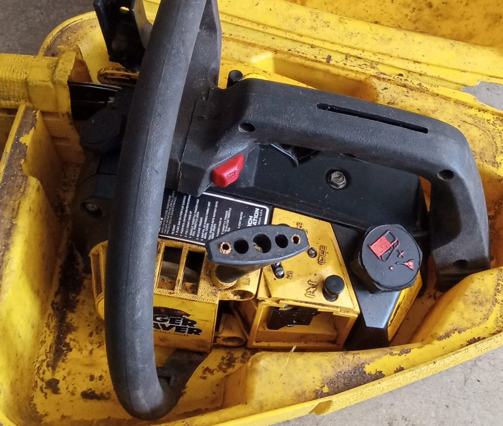 75Selling a vintage Auger Beaver Full Bore chainsaw. It shows signs of wear and use, but it's a solid piece of equipment. Comes in its original yellow case.