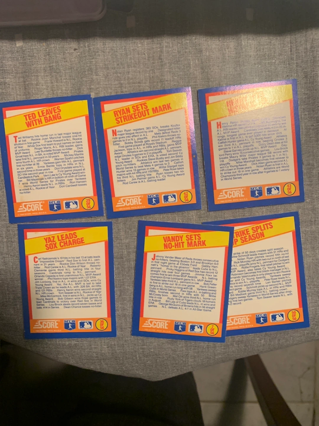 92Selling a collection of vintage baseball cards. There are cards from the Score series and also a set titled 'A Year To Remember' with various years featured. Great for collectors!