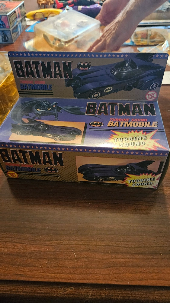 Selling a vintage Batman Batmobile by Toy Biz! It's the turbine sound version. The box has some wear, but it's still a cool collectible for any Batman fan