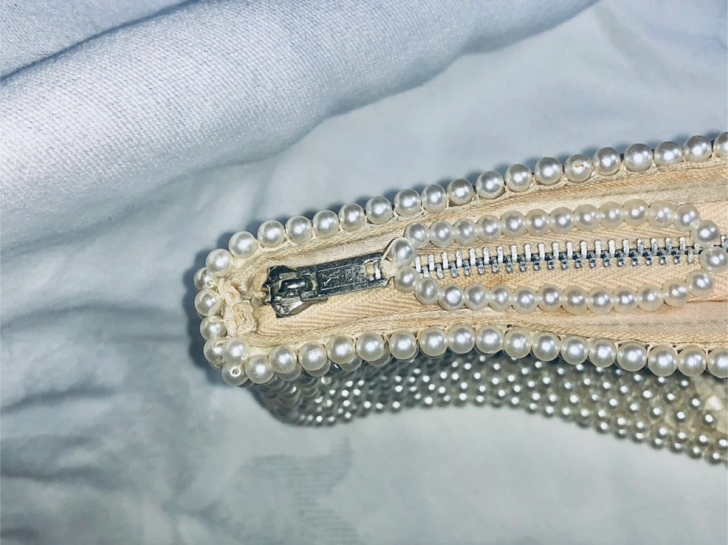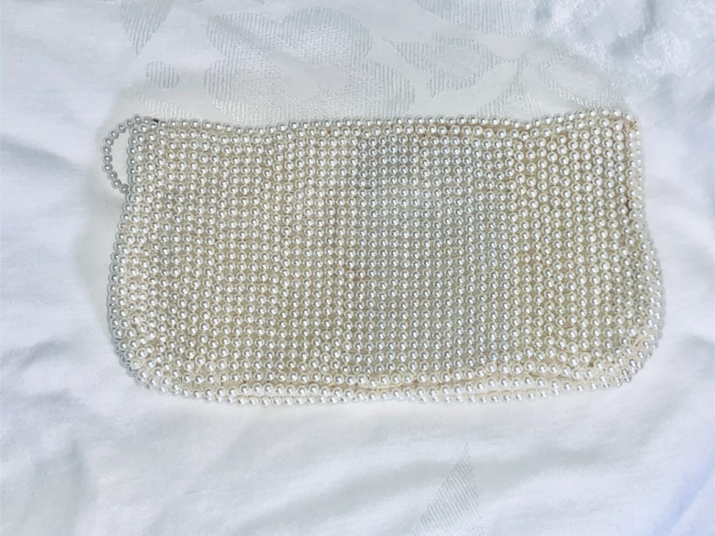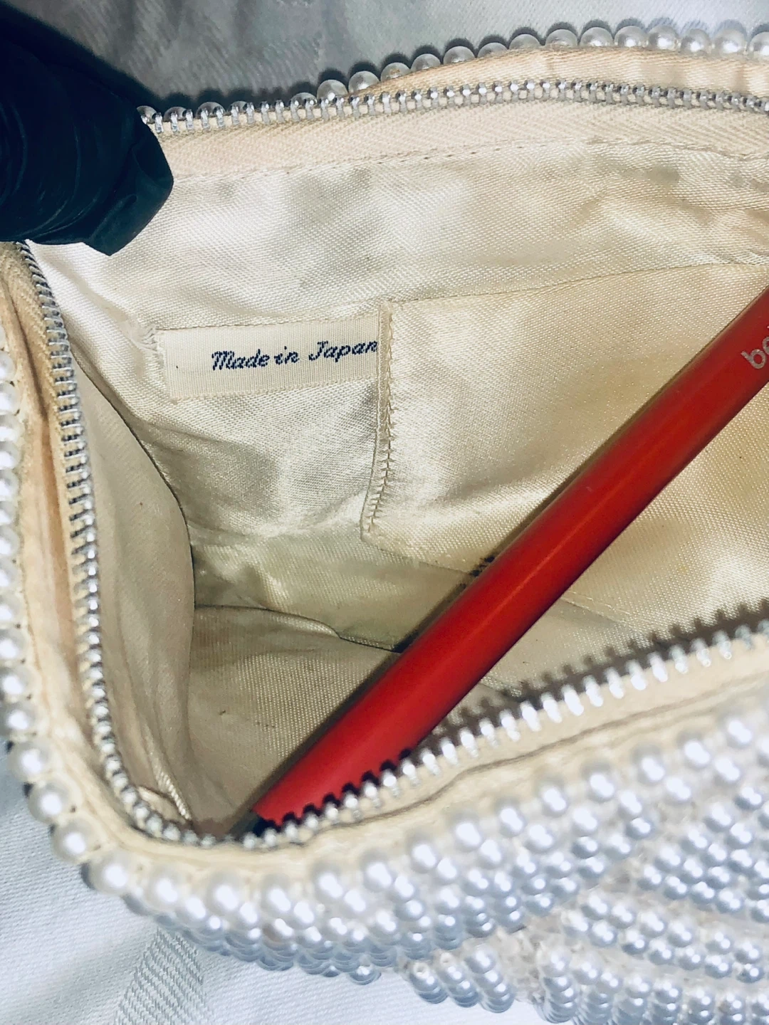 Selling a vintage beaded evening bag. It's in good condition and perfect for a night out, prom or any special occasion! The bag is off-white and features intricate beading. There is a tag that says Made in Japan. #Backtoschool🥕🥕