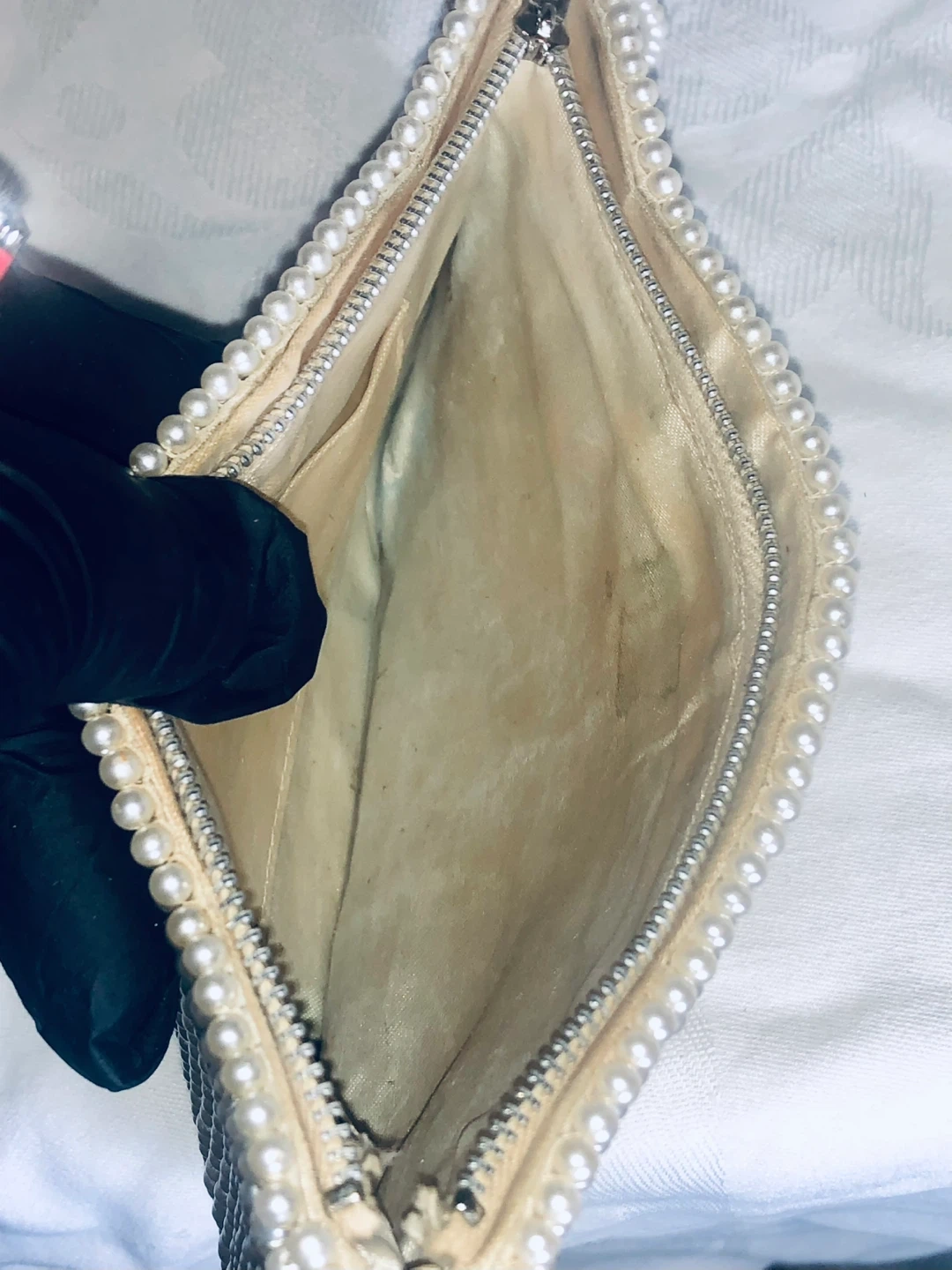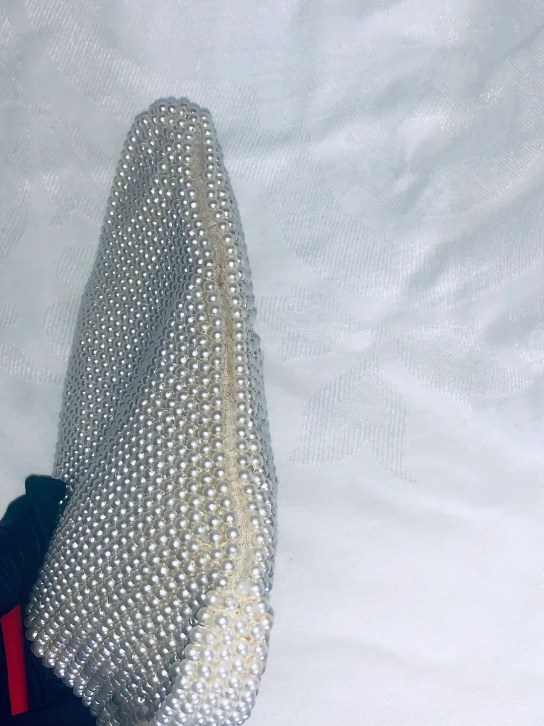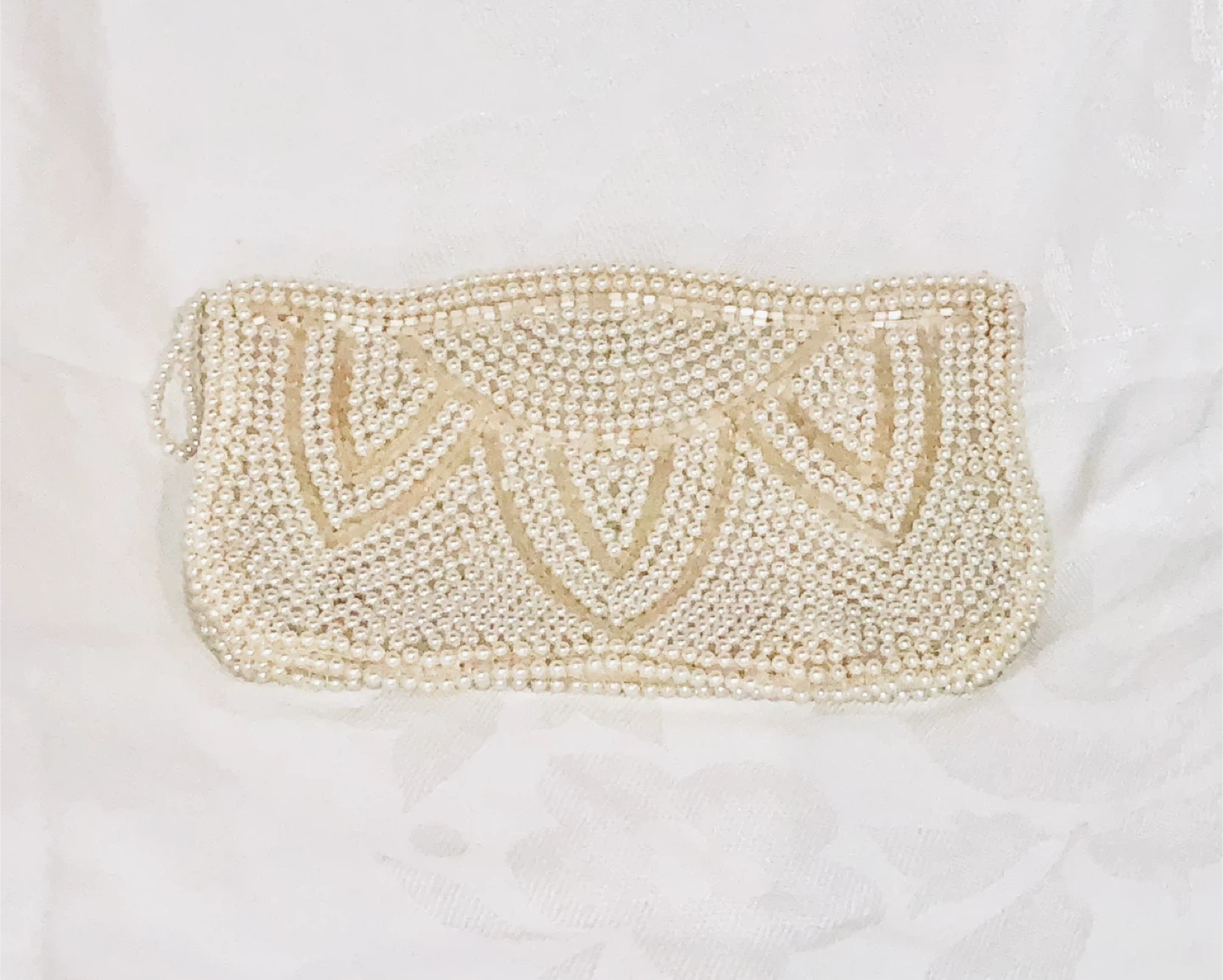 Selling a vintage beaded evening bag. It's in good condition and perfect for a night out, prom or any special occasion! The bag is off-white and features intricate beading. There is a tag that says Made in Japan. #Backtoschool🥕🥕