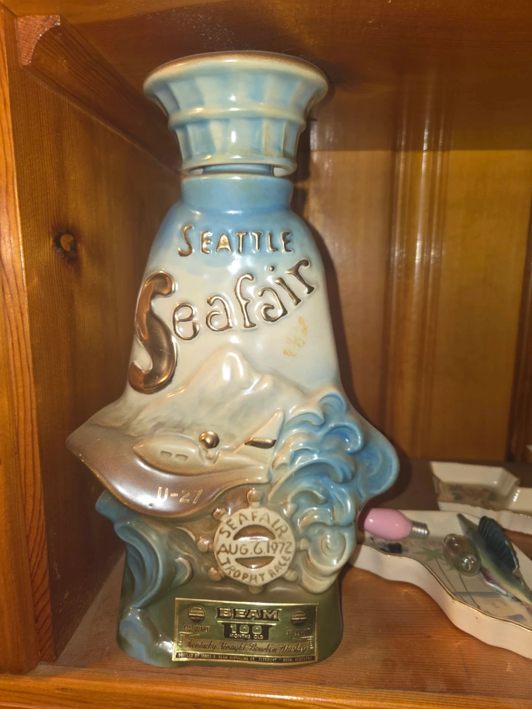 65Selling a vintage Beam decanter commemorating the Seattle Seafair trophy race from August 6, 1972. This unique piece is a 4/5 quart bottle of Kentucky Straight Bourbon Whiskey, bottled by James B. Beam Distilling Co. A great collector's item!