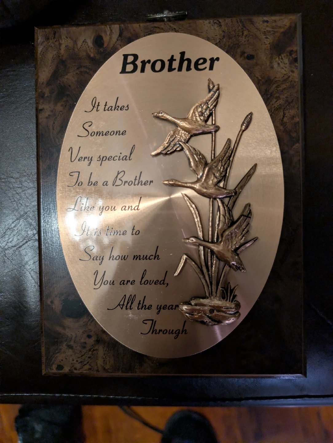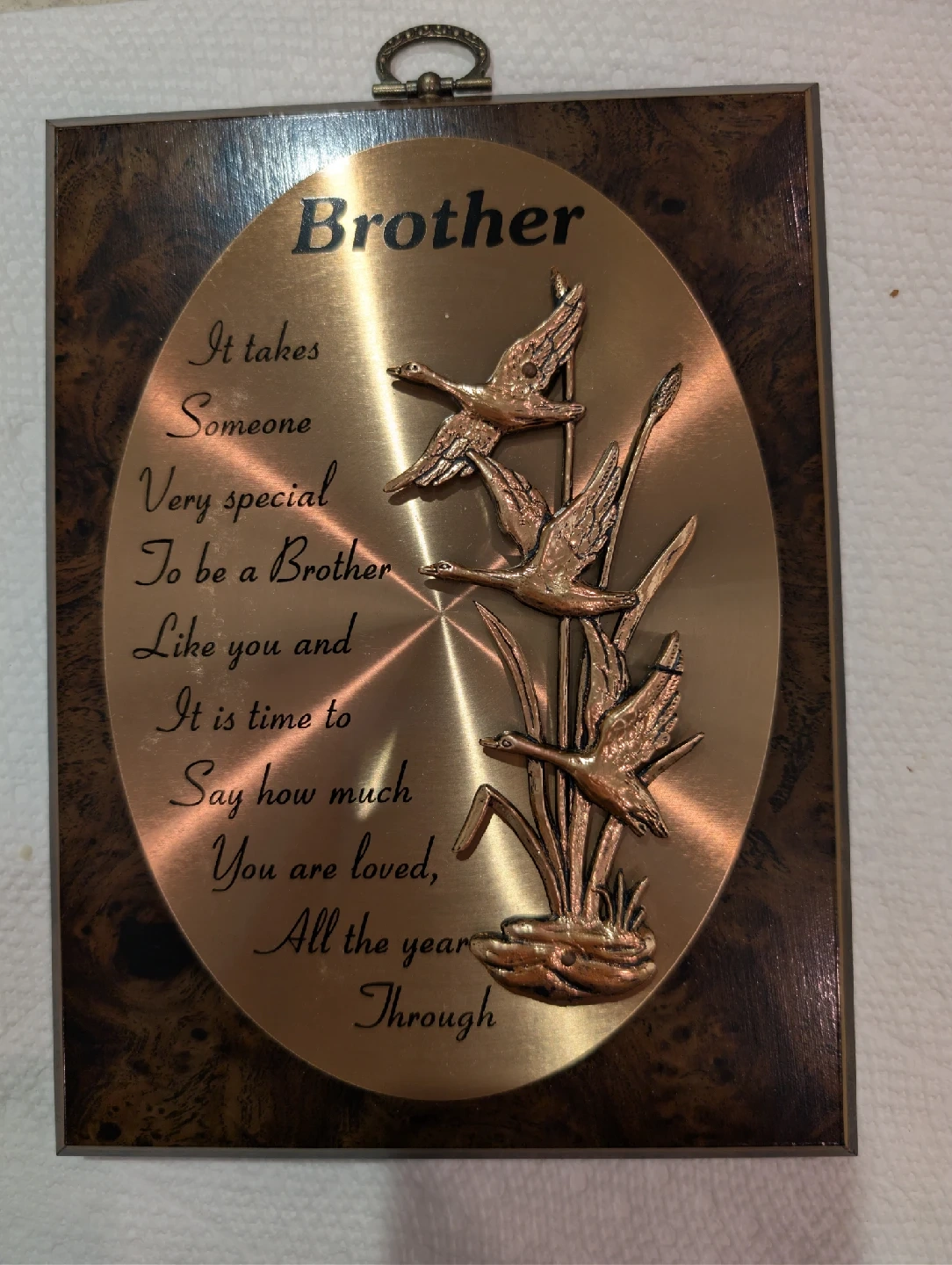 334This is a Bell Tree Inc. wall decor piece that says "Brother". It features an oval design with flying geese 3D Copper It's a charming piece made in Canada!