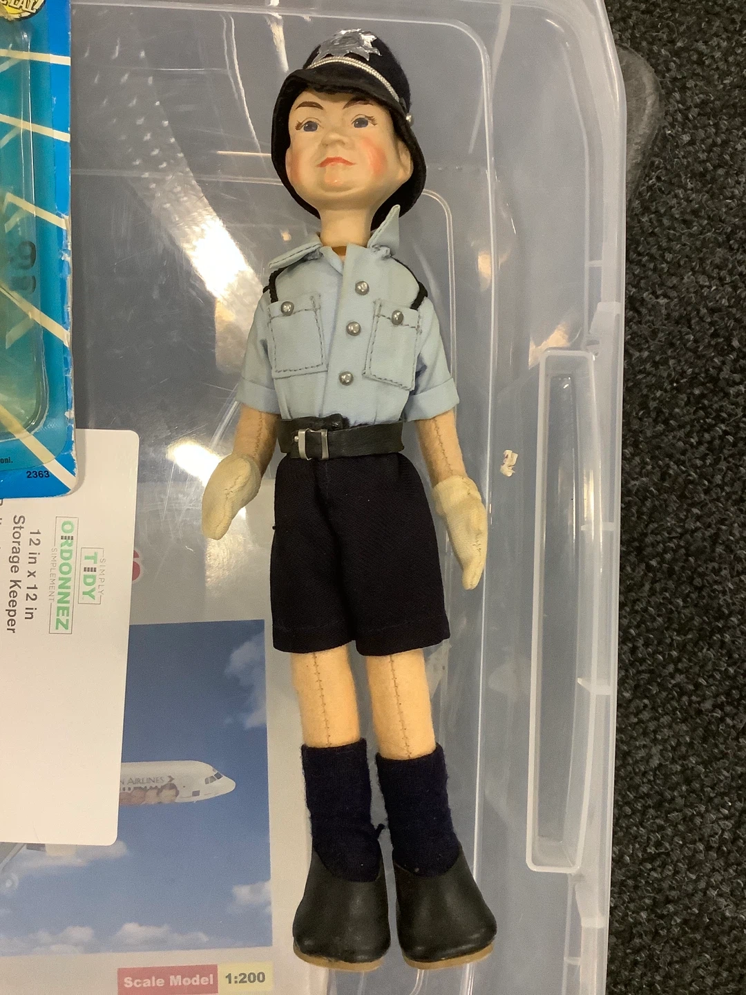 26I'm selling a vintage police officer Bobby doll. It appears to be in good condition for its age.