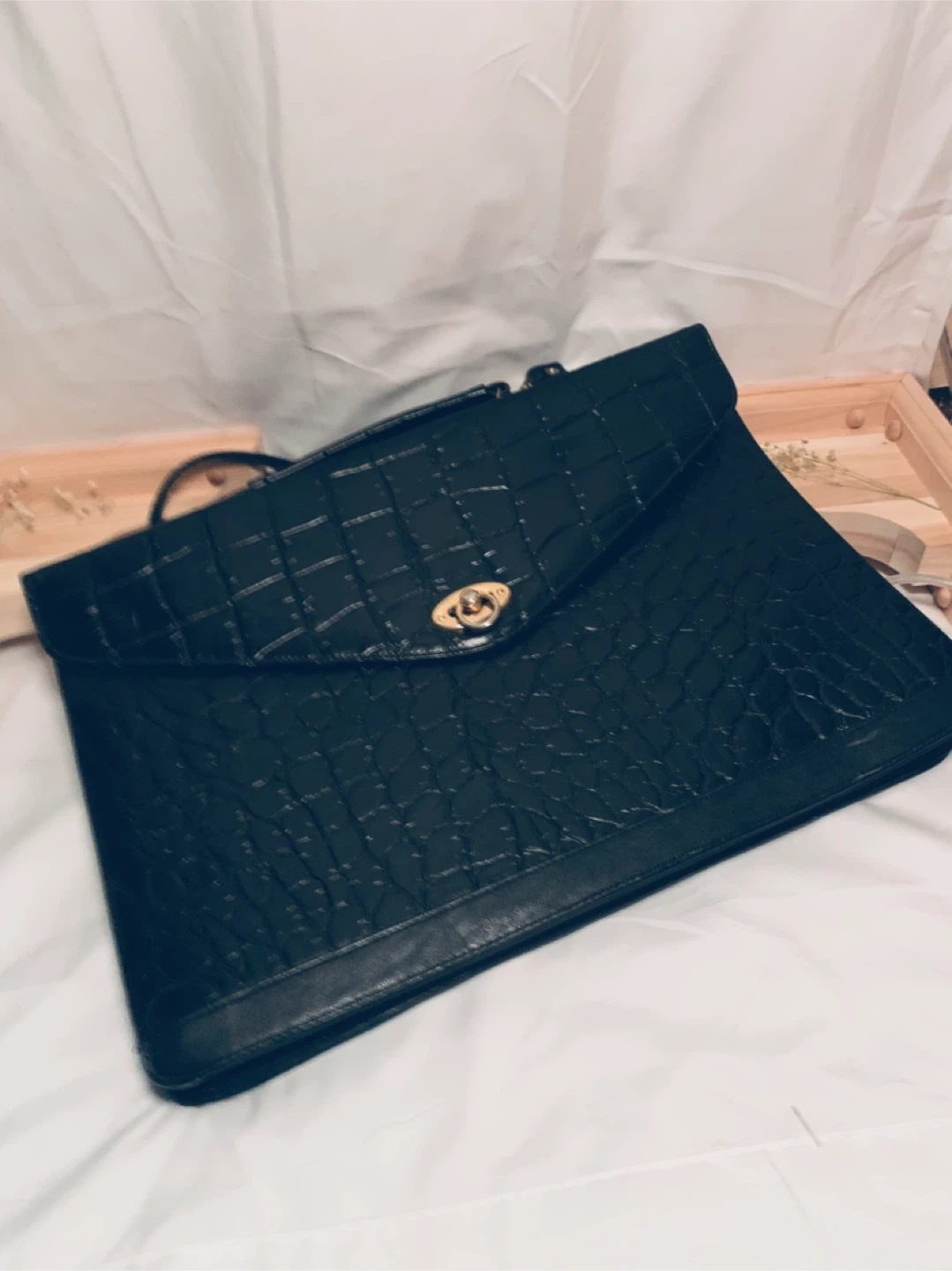 Vintage Black Crocodile-Style Briefcase