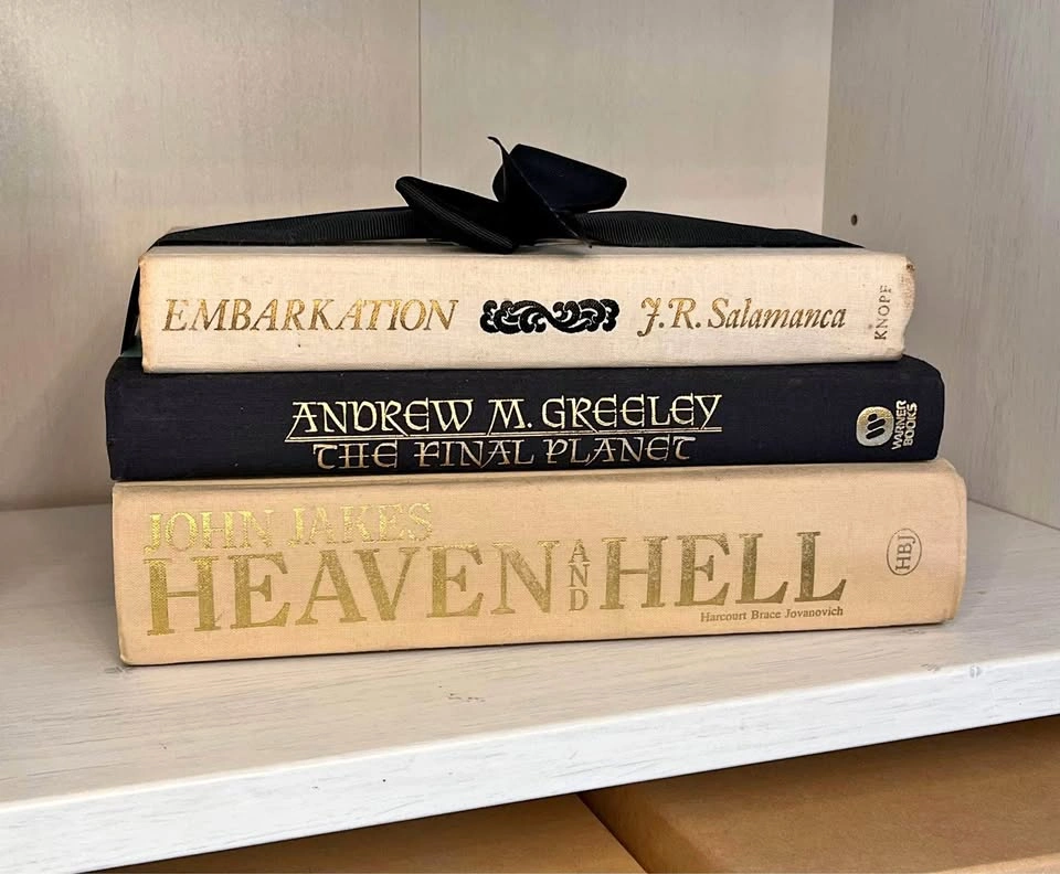65Set of 3 real vintage hardcover books. Black and white esthetic. Wrapped with ribbon to display decoratively, but can be separated without damage. Porch pick up in Aurora 60503.