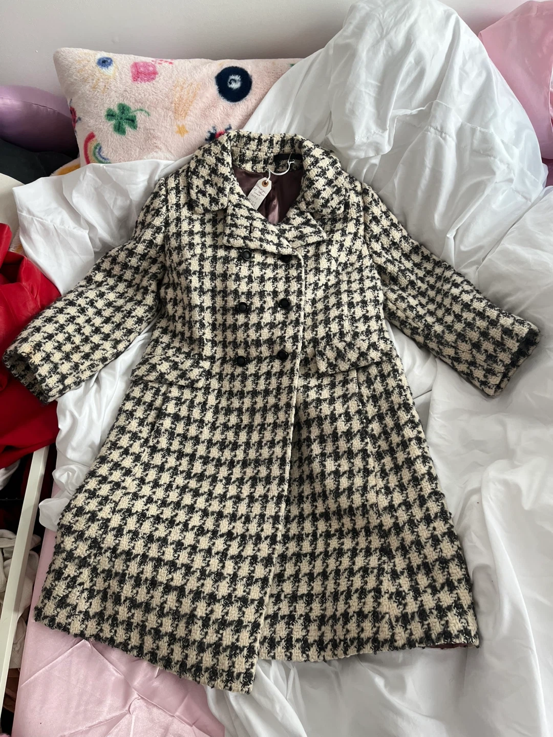 10Selling a stylish houndstooth wool coat from Bromleigh New York! It's a classic piece that would be a great addition to any wardrobe. Perfect condition, never worn. All inner lining is impeccable, no tears or scratches anywhere. All buttons in tact, 2 front pockets for your hands. About 40” tall, 20.5” wide, 21.5” shoulder to wrist (arm) - all pictured for reference. Seems like an 8/10 or womens large