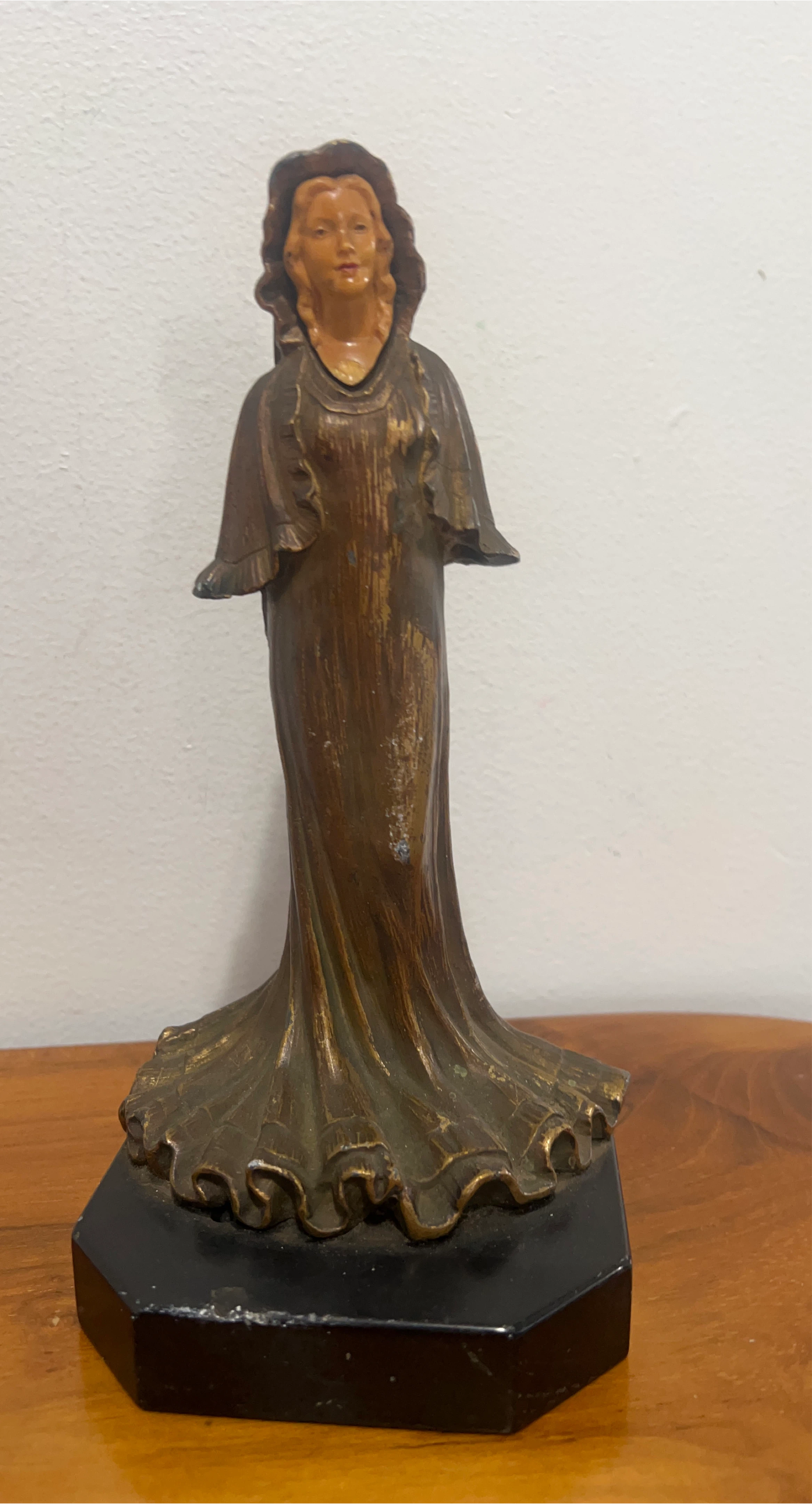 Selling a vintage bronze lady figurine statue. It has a classic design and would make a great addition to any collection or home decor. There are some signs of wear, as pictured.