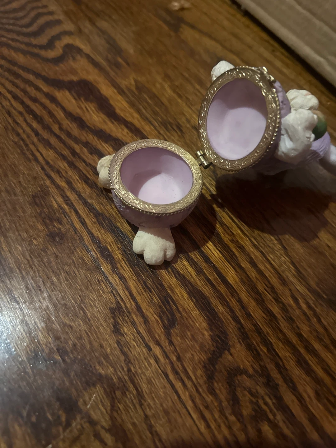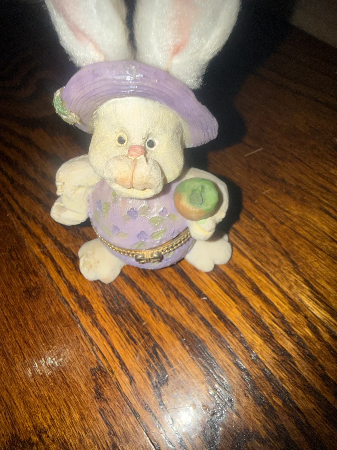 12This is a vintage bunny trinket box. It's in good condition and ready for a new home! It would be perfect for storing small jewelry or other treasures