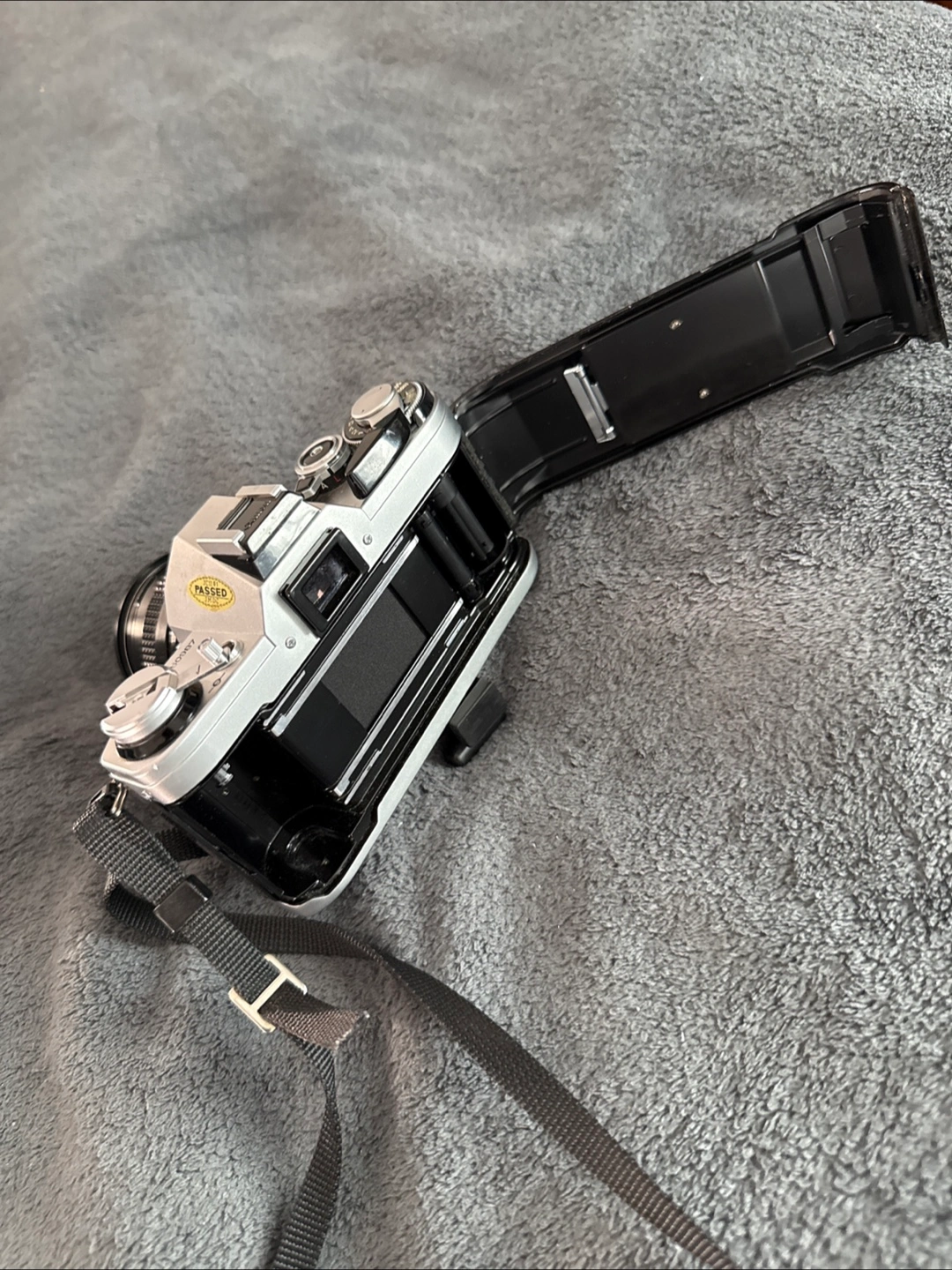 35mm film camera. Includes lens and strap. Classic design. Great for photography enthusiasts.