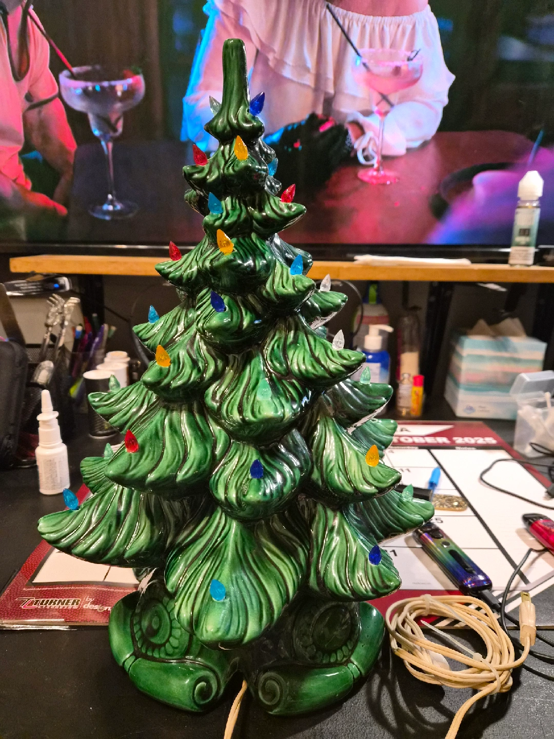 Selling a vintage ceramic Christmas tree, complete with colorful lights! It's a charming piece that would add a festive touch to any room during the holidays