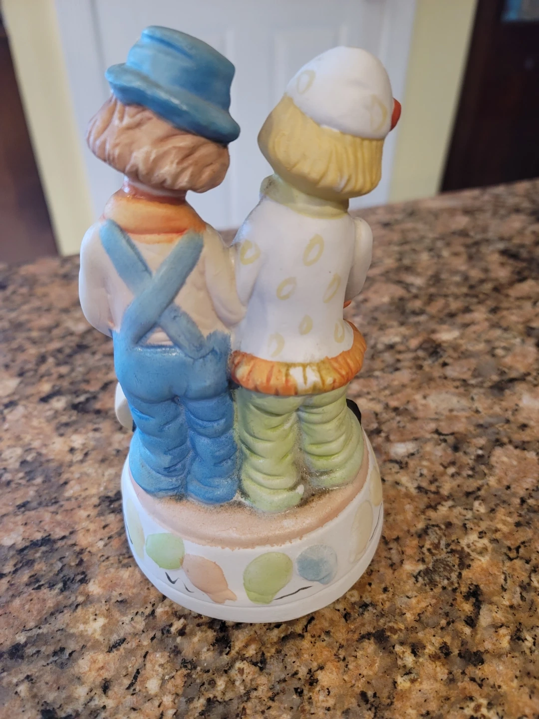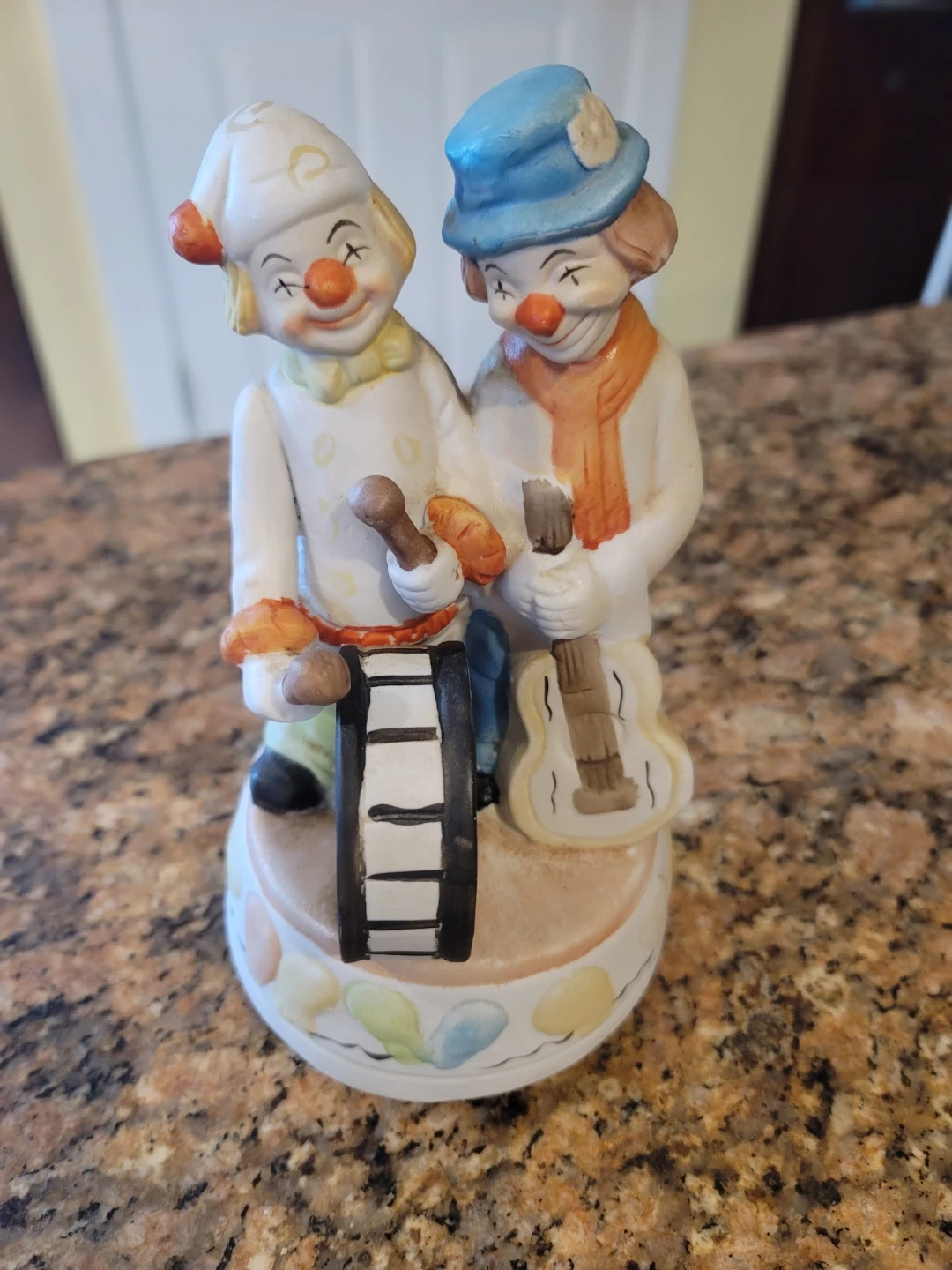 18A charming vintage clown music box featuring two clowns playing instruments! The base reads "Send in the Clowns". It's in good condition and ready to bring a touch of whimsy to your home pick up in Merrick Ny CASH ONLY