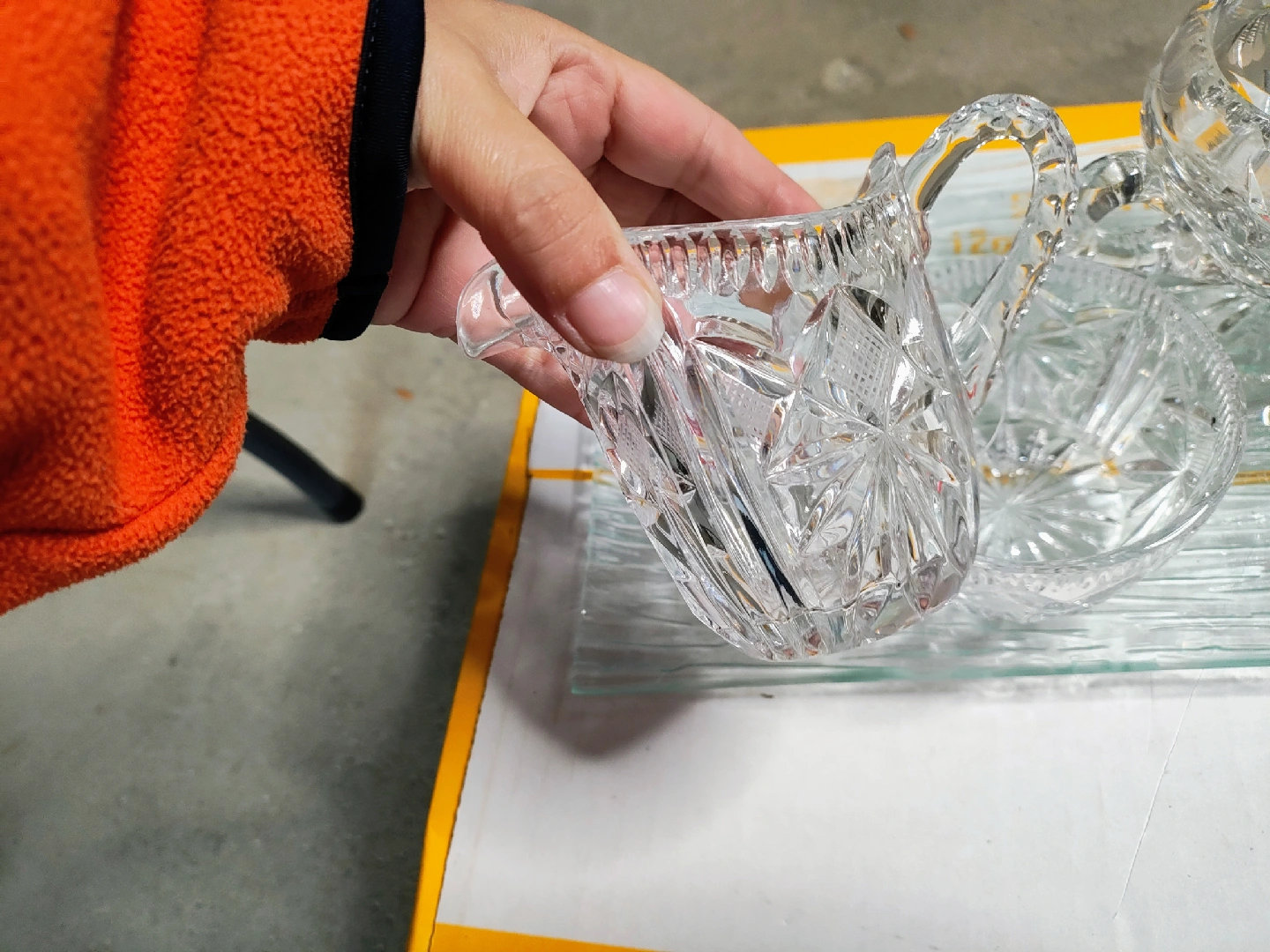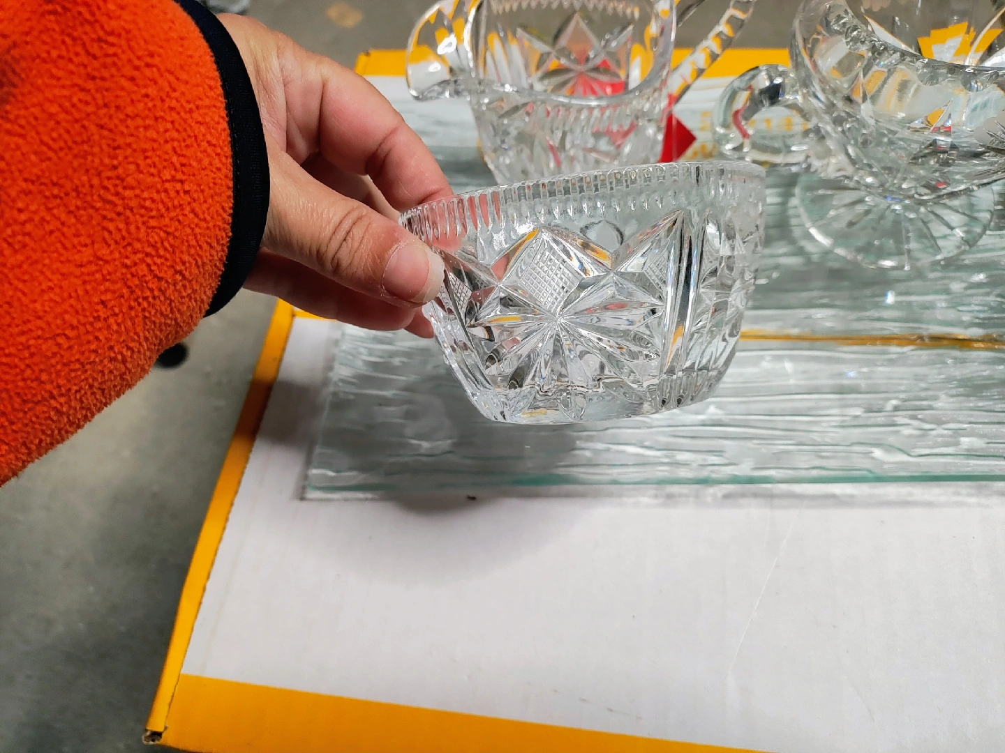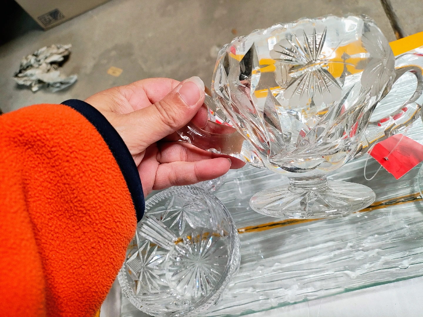 Selling a beautiful vintage cut crystal set! Includes (2) creamer, (2) sugar bowl, and a decorative plate. The intricate designs catch the light wonderfully, making it a lovely addition to any table setting