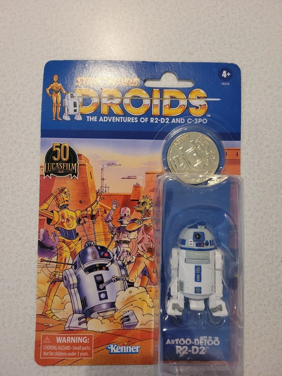 81Vintage Disney Star Wars DROIDS R2D2 Action Figure Toy & Coin New on Card!! See pics!!! Size: 3 in Packaging: With original packaging Character Family: Disney Star Wars Brand: DROIDS R2D2 Age Level: Toy