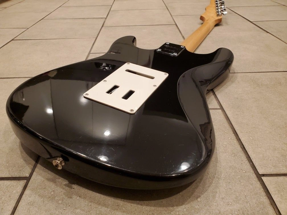 Vintage 1996 Epiphone S-310 Batwing Stratocaster - Made In Korea Trades Considered - Accepting Offers In excellent condition for a 26 year old guitar, needs a new set of strings Body: Laminated alder body Neck: Maple Neck Maple Fingerboard with dot inlays 25.5" scale 1.68" nut width Headstock: Batwing headstock Electronics: 3 Epiphone single coil pickups 1 Vol. 2 Tone controls 3-way Selector Switch Hardware: Chrome Hardware 2-Point Fulcrum tremolo White pickguard White top-hat knobs Body Color: Black Size: 4/4 Right Or Left Handed: Right-handed Type: Electric Brand: Gibson Epiphone