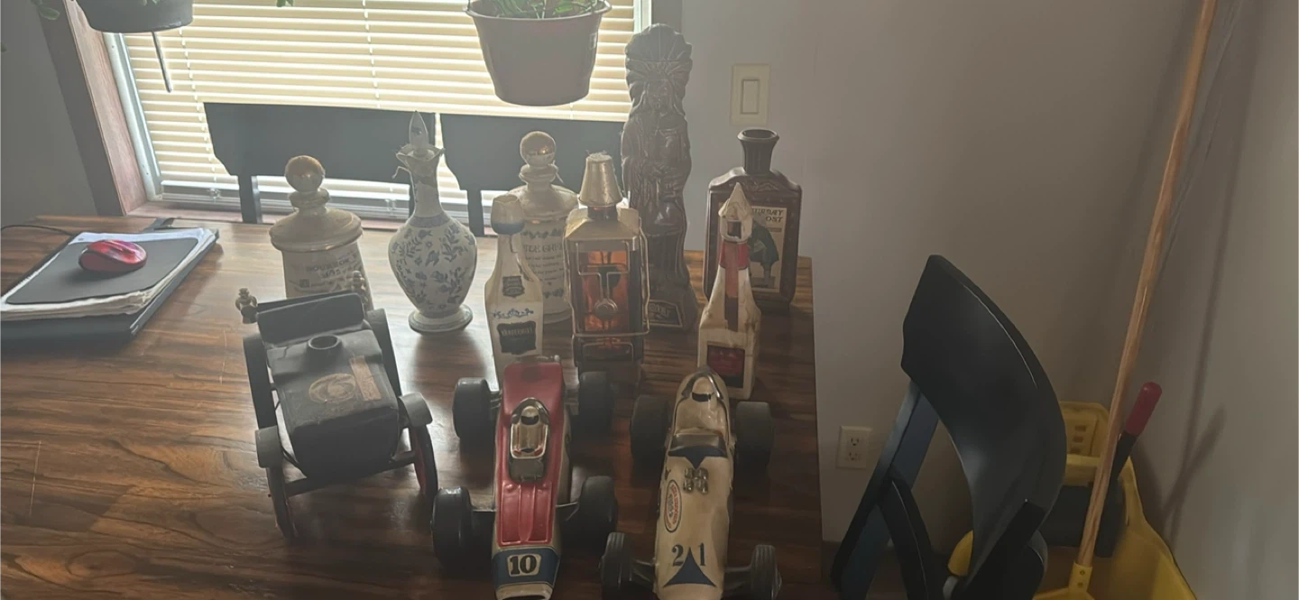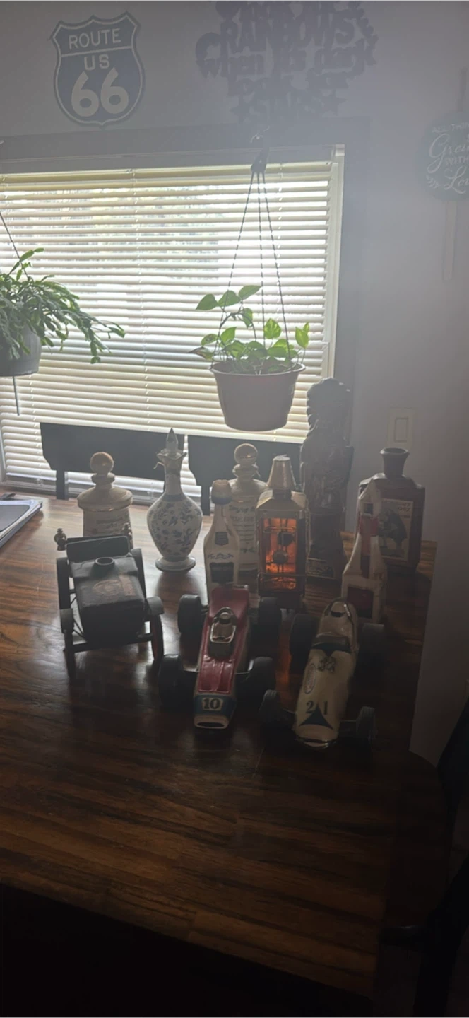 Selling a collection of vintage Ezra Brooks race car decanters! These unique decanters are great for collectors or as a decorative piece for your home bar. They add a touch of vintage charm and racing history to any space