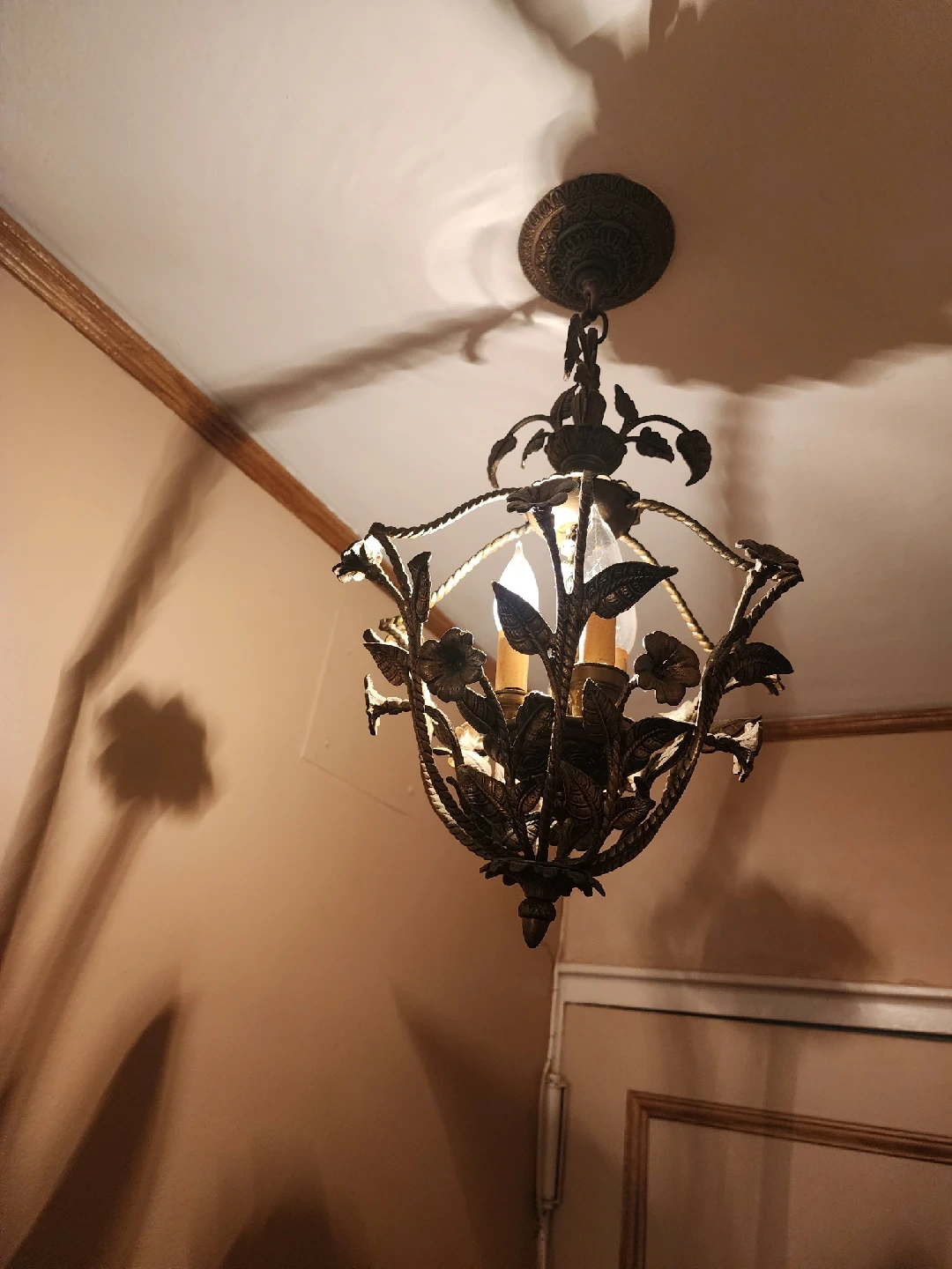 43Selling a vintage floral chandelier. It has a unique and decorative design. Perfect for adding a touch of elegance to any room!