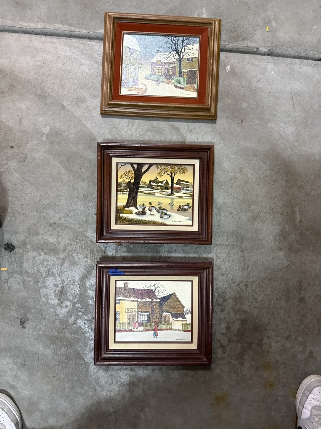 10Selling a set of vintage framed paintings depicting winter landscapes. Each piece has a unique charm and would add a cozy touch to any room. The frames are in good condition, and the artwork captures the serene beauty of winter scenes