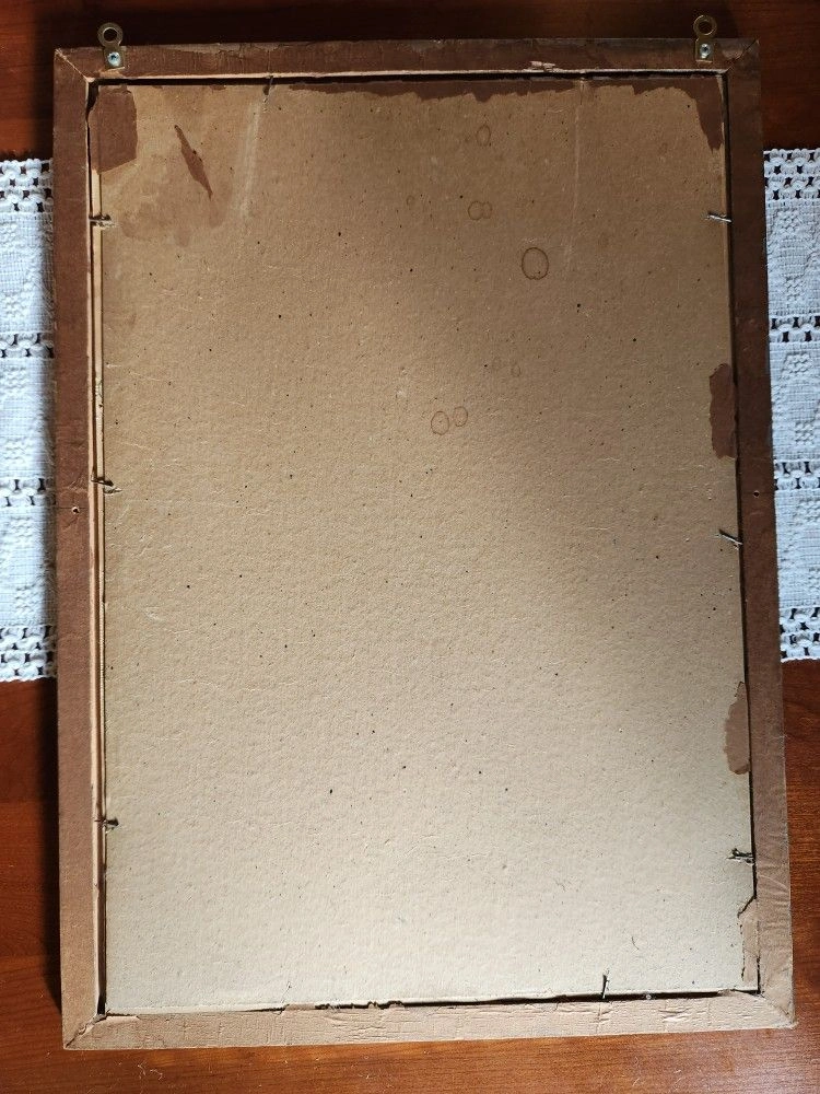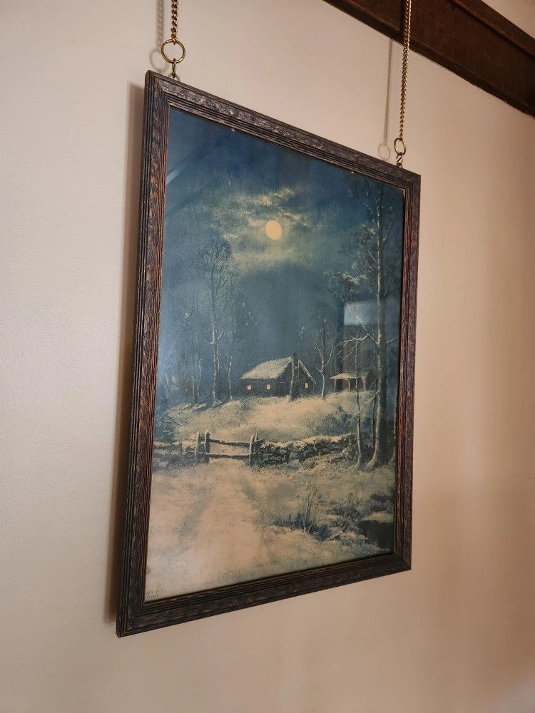 Vintage Framed Wintry Night Lithograph 21.75"x15.75"