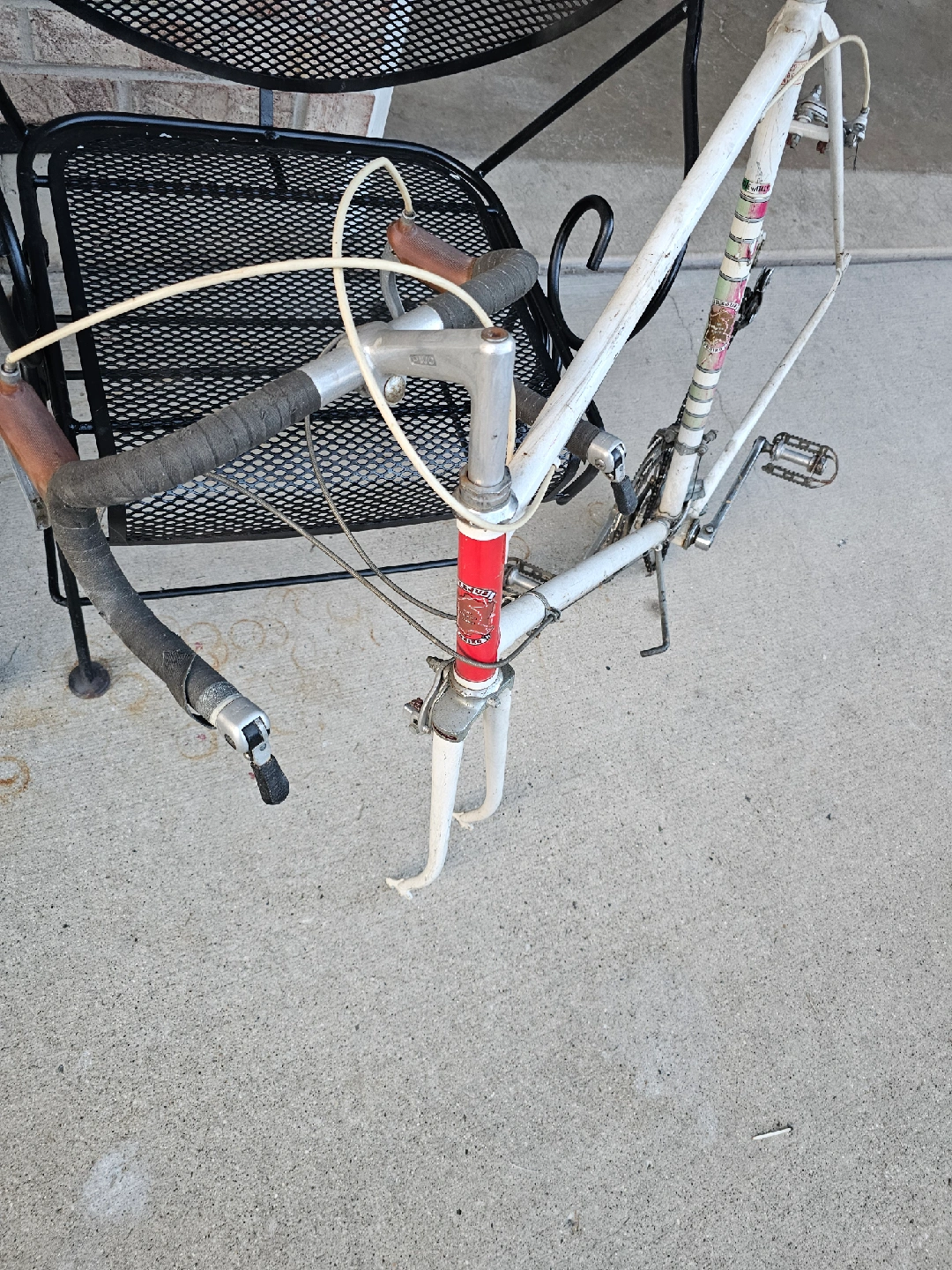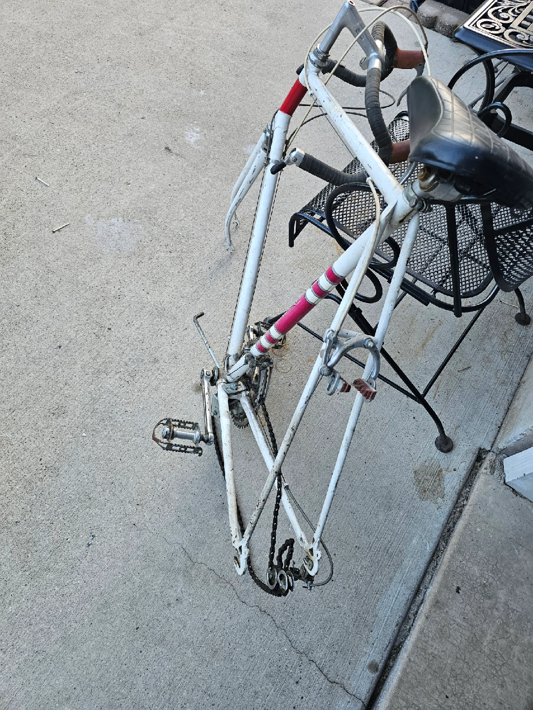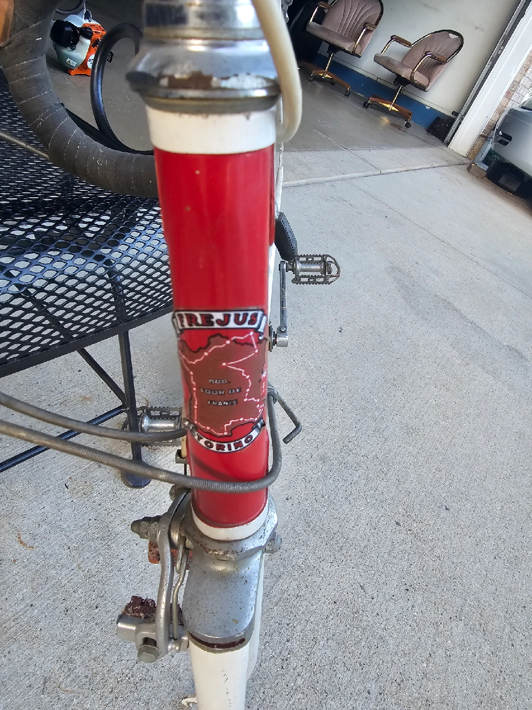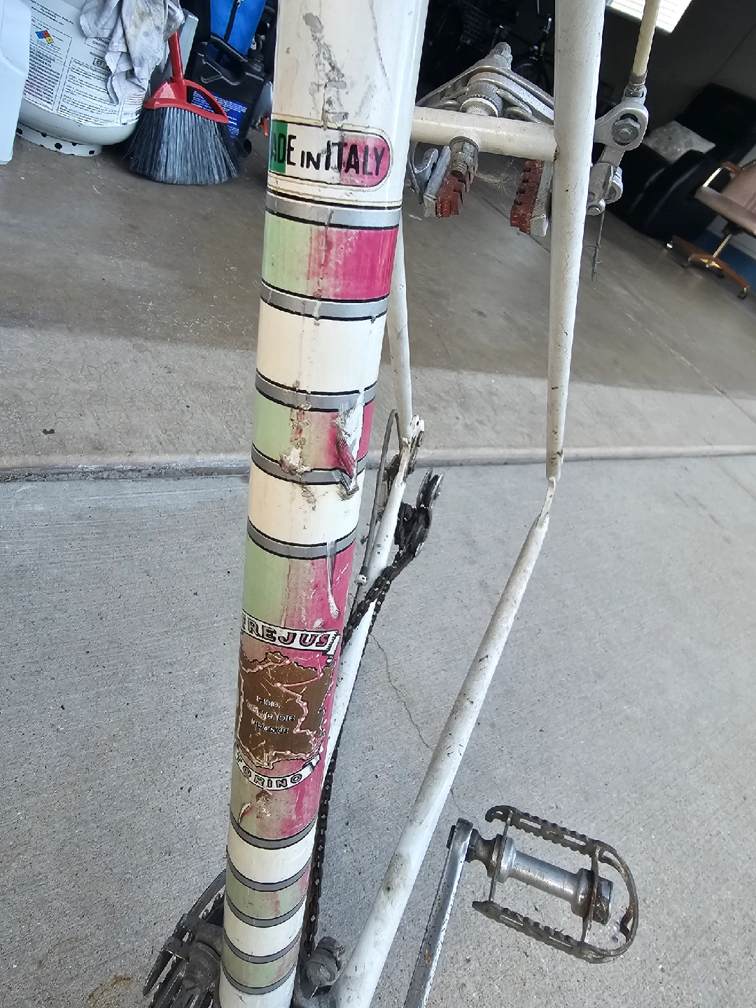 Selling a vintage Frejus road bike frame. It shows signs of wear and tear due to its age, but it is still a cool piece of cycling history. "Made in Italy" is visible on the frame.