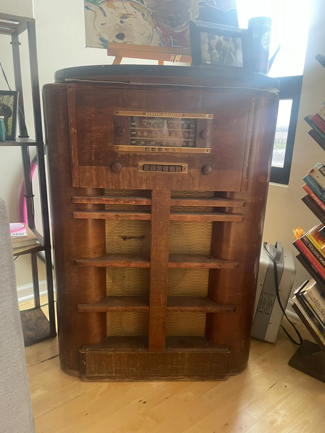 Selling a vintage General Electric radio. It has a unique look and could be a cool rehab project. Please see photos for condition.
